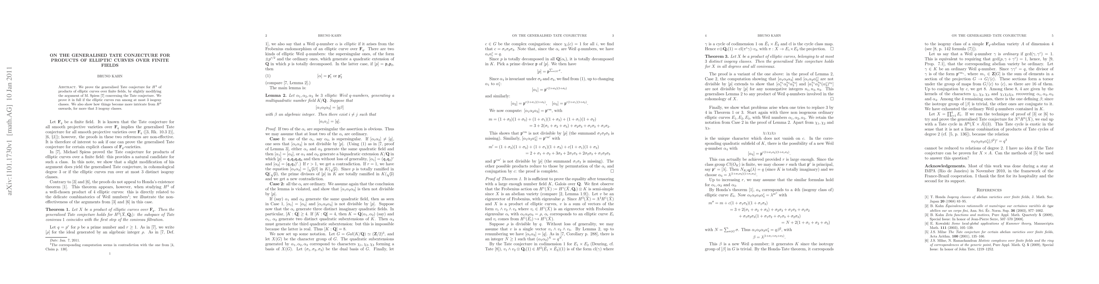 The paper proves the generalised Tate conjecture for H^3 of products of elliptic curves over finite fields, adapting M. Spiess's method. It fully validates the conjecture for elliptic curves within at most three isogeny classes but notes increased complexity starting from H^4 for more than three classes.