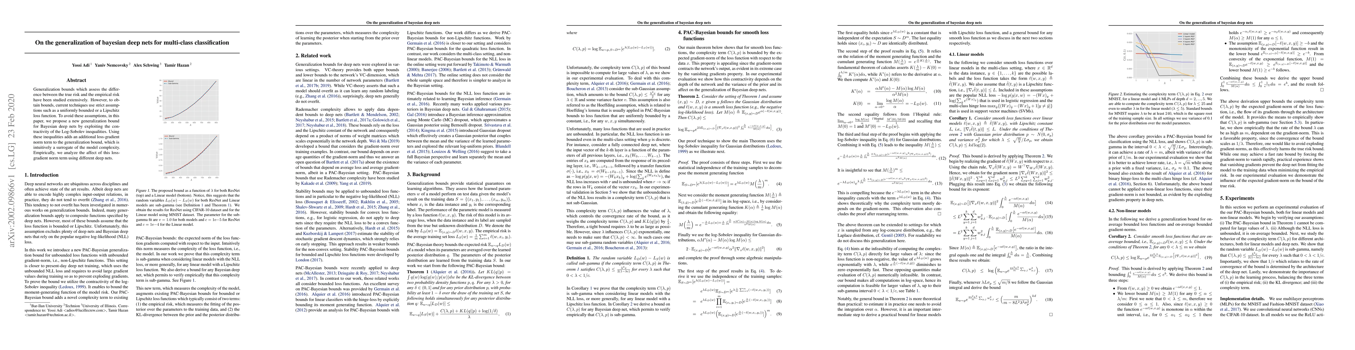 This paper proposes a new generalization bound for Bayesian deep nets that avoids strict assumptions like uniformly bounded or Lipschitz loss functions by leveraging Log-Sobolev inequalities. The method introduces a loss-gradient norm term as a surrogate for model complexity, and empirical analysis is conducted to examine its effect across various deep networks.