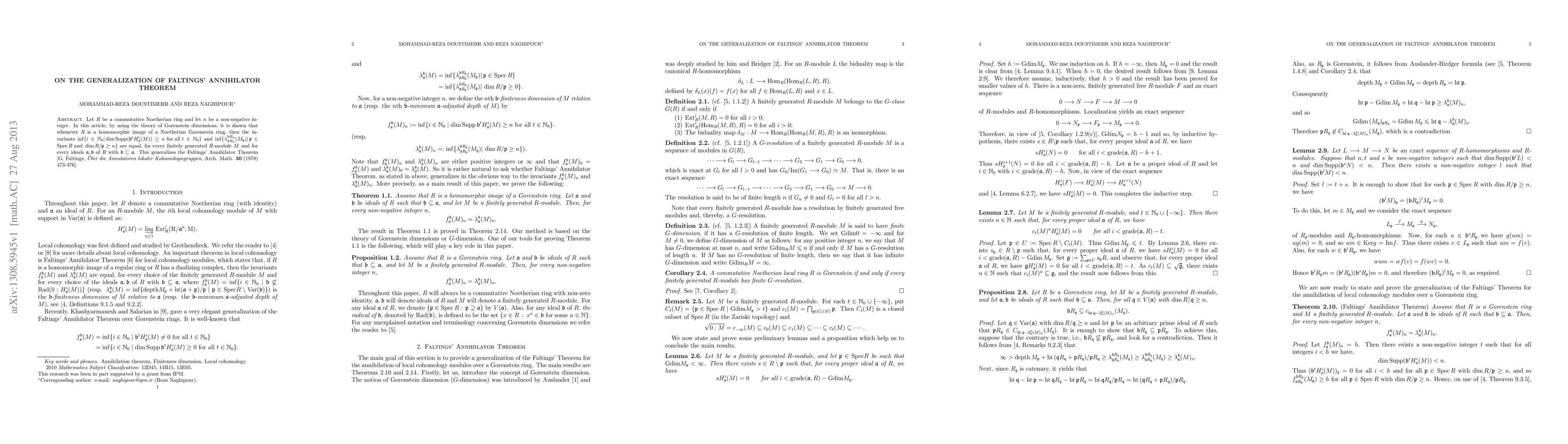 This paper generalizes Faltings' Annihilator Theorem by showing that for a commutative Noetherian ring $R$ that is a homomorphic image of a Noetherian Gorenstein ring, two invariants related to local cohomology modules are equal under certain conditions. The result uses the theory of Gorenstein dimensions.