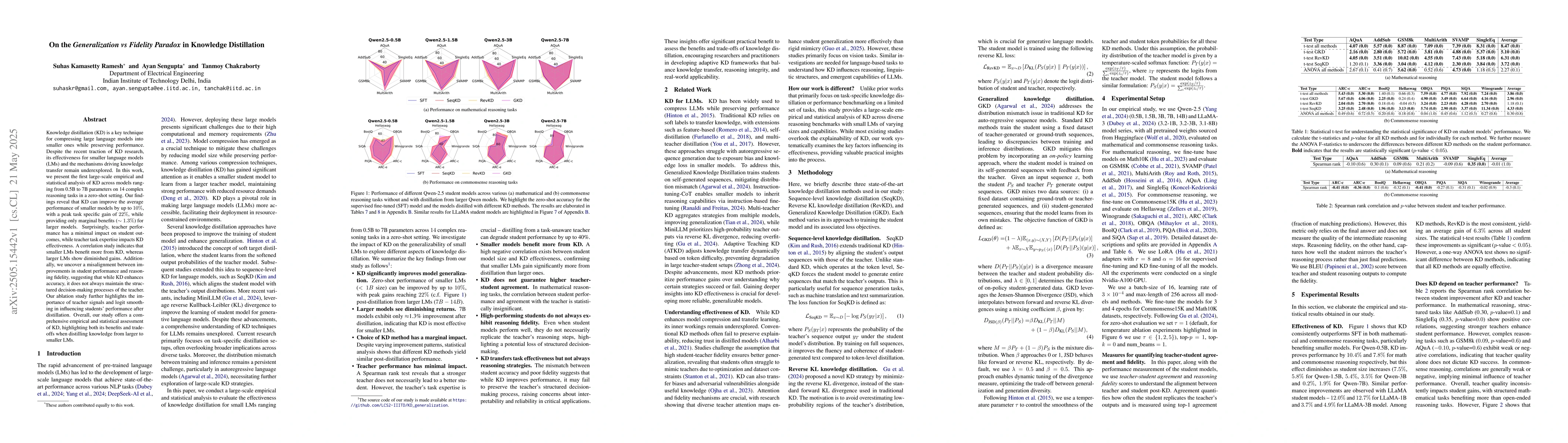 Large-scale empirical and statistical analysis of knowledge distillation (KD) across models ranging from 0.5B to 7B parameters on 14 complex reasoning tasks in a zero-shot setting.