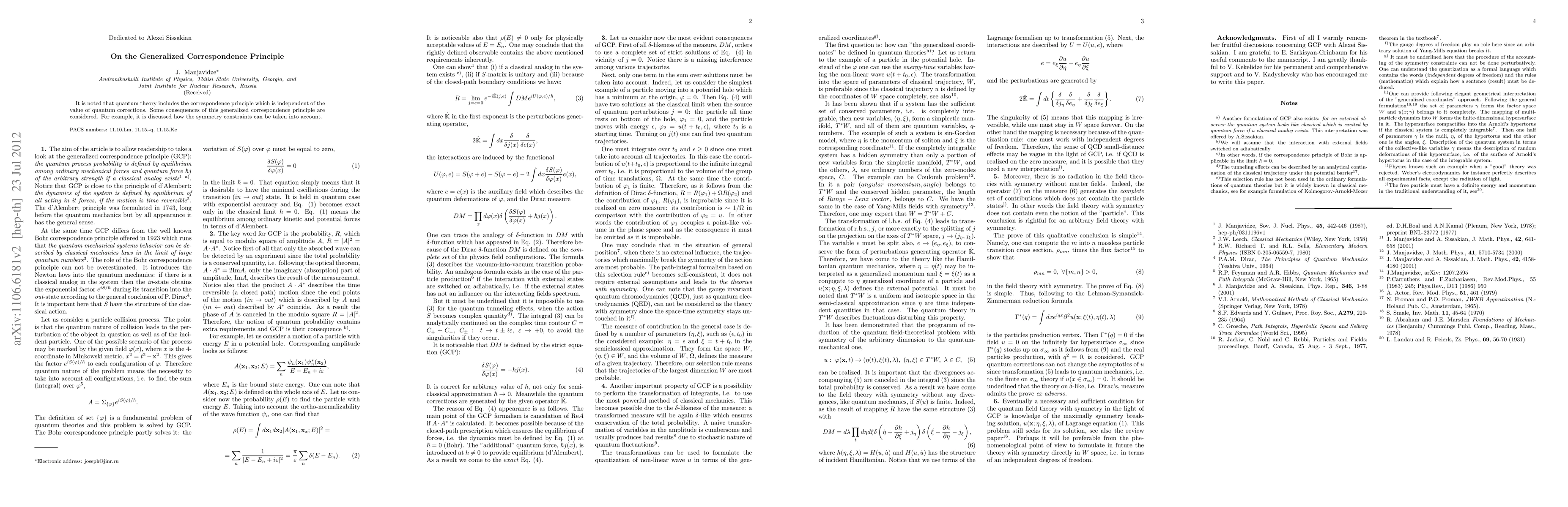 It is noted that quantum theory includes the correspondence principle which is independent of the value of quantum corrections. Some consequences of this generalized correspondence principle are considered. For example, it is discussed how the symmetry constraints can be taken into account.