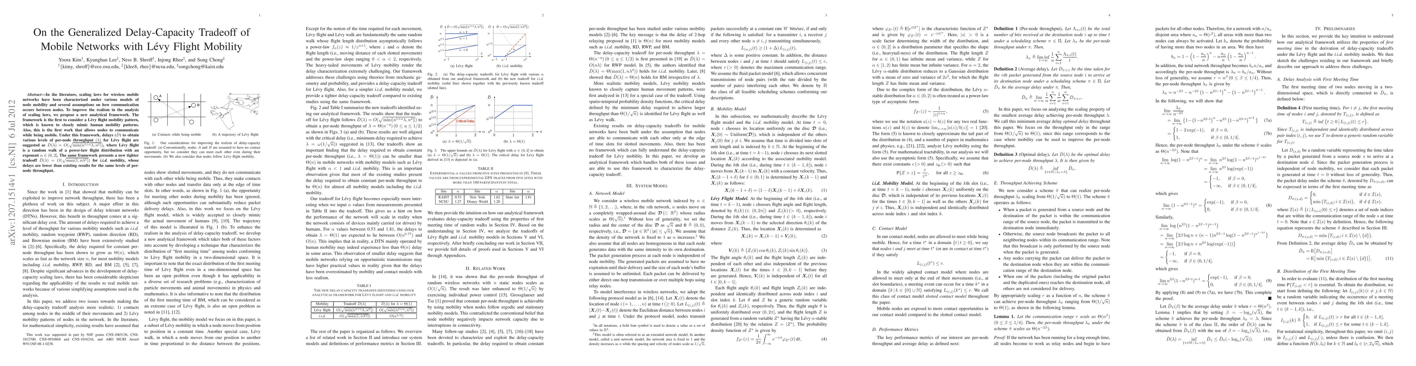 This paper proposes a new analytical framework for mobile networks considering Lévy flight mobility, which better mimics human movement. It presents novel delay-capacity tradeoffs, showing that delays to achieve various throughput levels are lower than existing models, especially under i.i.d. mobility.