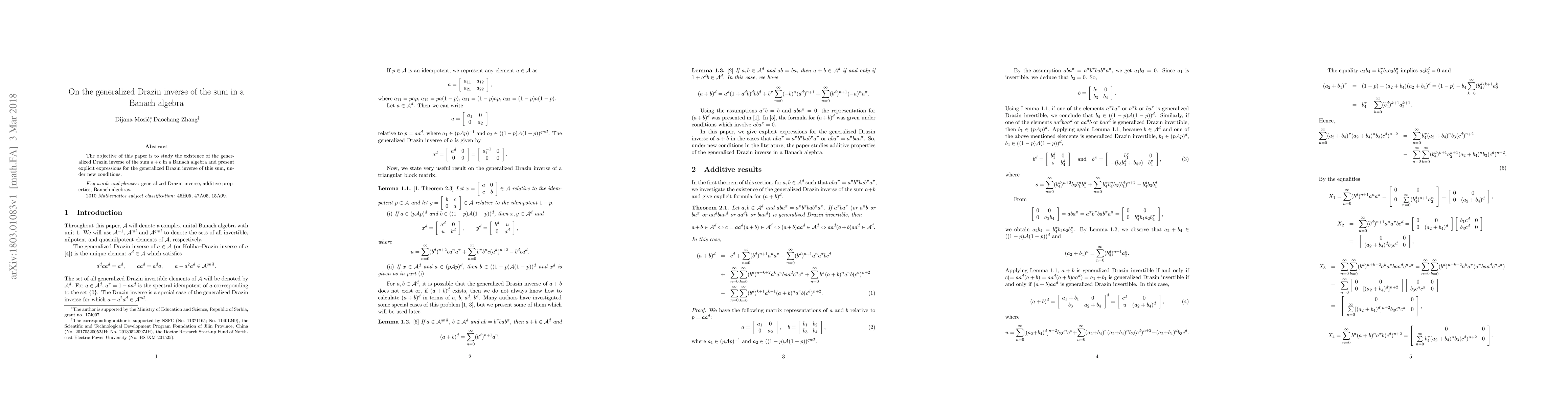 The objective of this paper is to study the existence of the generalized Drazin inverse of the sum $a+b$ in a Banach algebra and present explicit expressions for the generalized Drazin inverse of this sum, under new conditions.