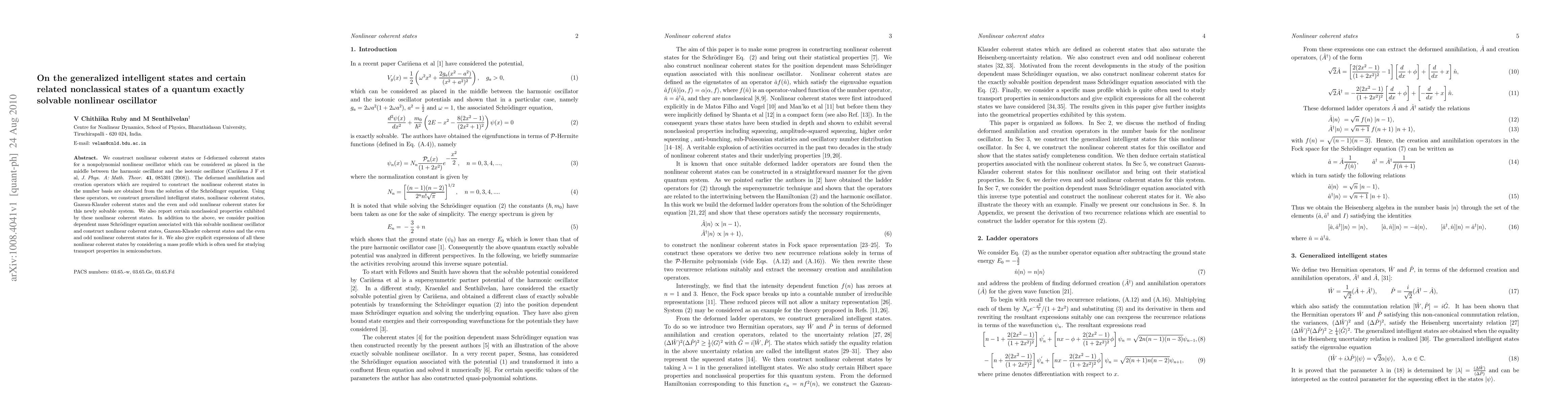 This paper constructs nonlinear coherent states for a nonpolynomial nonlinear oscillator, deriving deformed annihilation and creation operators from the Schrödinger equation. It also explores generalized intelligent states and reports nonclassical properties, extending the analysis to a position-dependent mass Schrödinger equation with explicit expressions for various coherent states.