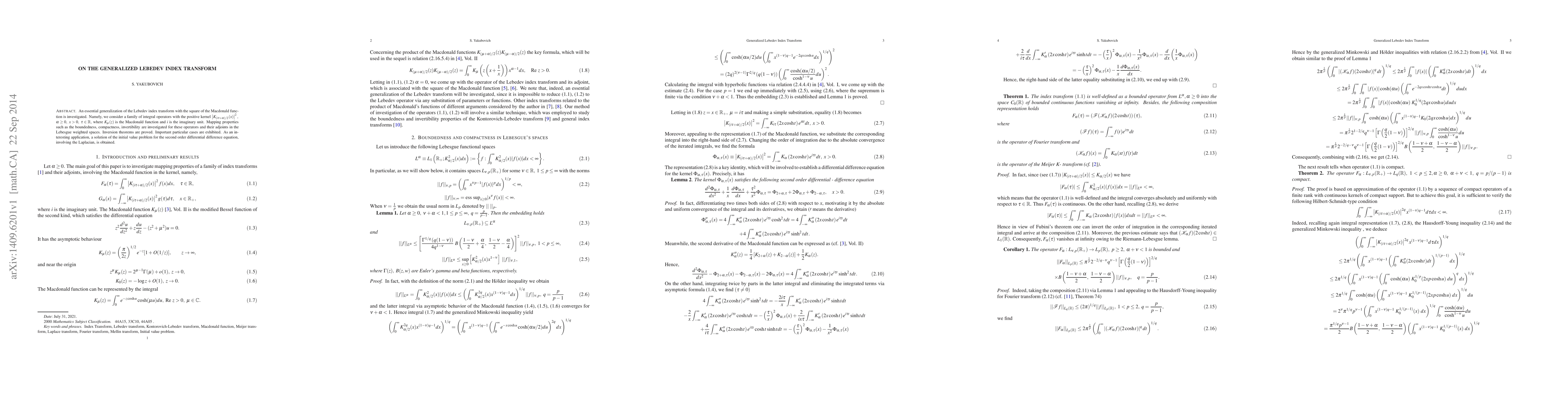 An essential generalization of the Lebedev index transform with the square of the Macdonald function is investigated. Namely, we consider a family of integral operators with the positive kernel $|K_{(i\tau+\alpha)/2}(x)|^2, \alpha \ge 0,\ x >0, \ \tau \in \mathbb{R},$ where $K_\mu(z)$ is the Macdonald function and $ i$ is the imaginary unit. Mapping properties such as the boundedness, compactness, invertibility are investigated for these operators and their adjoints in the Lebesgue weighted spaces. Inversion theorems are proved. Important particular cases are exhibited. As an interesting application, a solution of the initial value problem for the second order differential difference equation, involving the Laplacian, is obtained.