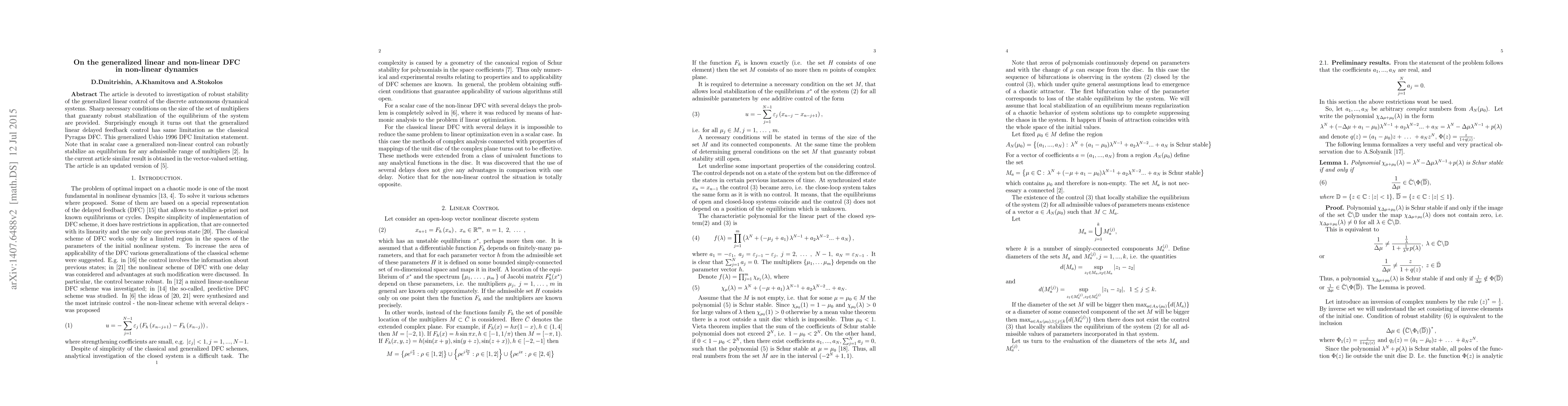 Researchers found that a generalized linear control technique for stabilizing autonomous dynamical systems has the same limitations as a classic Pyragas feedback control method, requiring sharp conditions on set multipliers to guarantee stability.