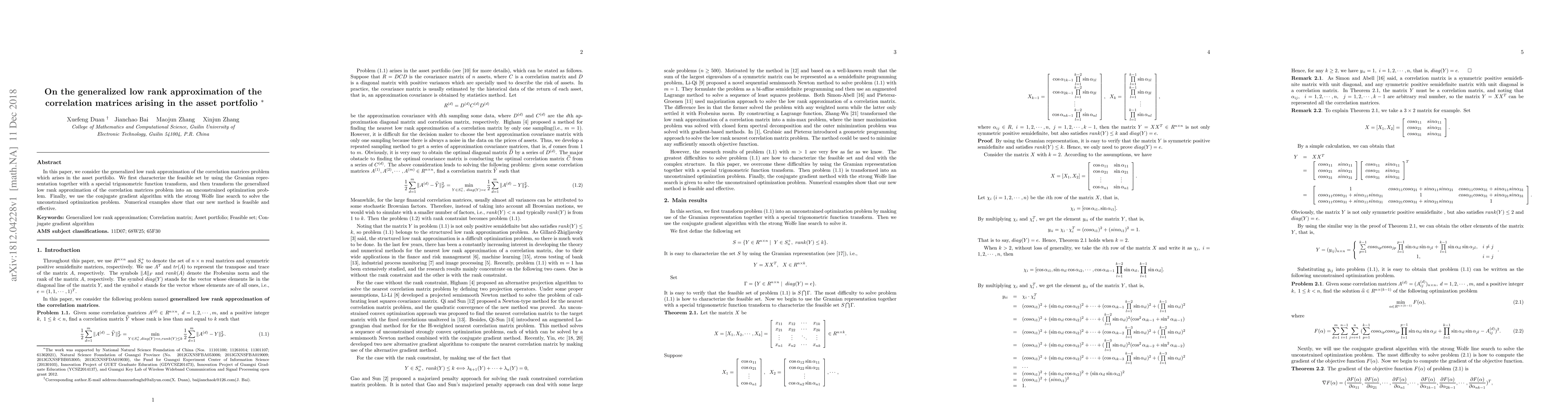 This paper develops a method for generalized low rank approximation of correlation matrices in asset portfolio management, transforming the problem into an unconstrained optimization issue using a Gramian representation and trigonometric function transform. The conjugate gradient algorithm with strong Wolfe line search is employed to solve it, demonstrating feasibility and effectiveness through numerical examples.