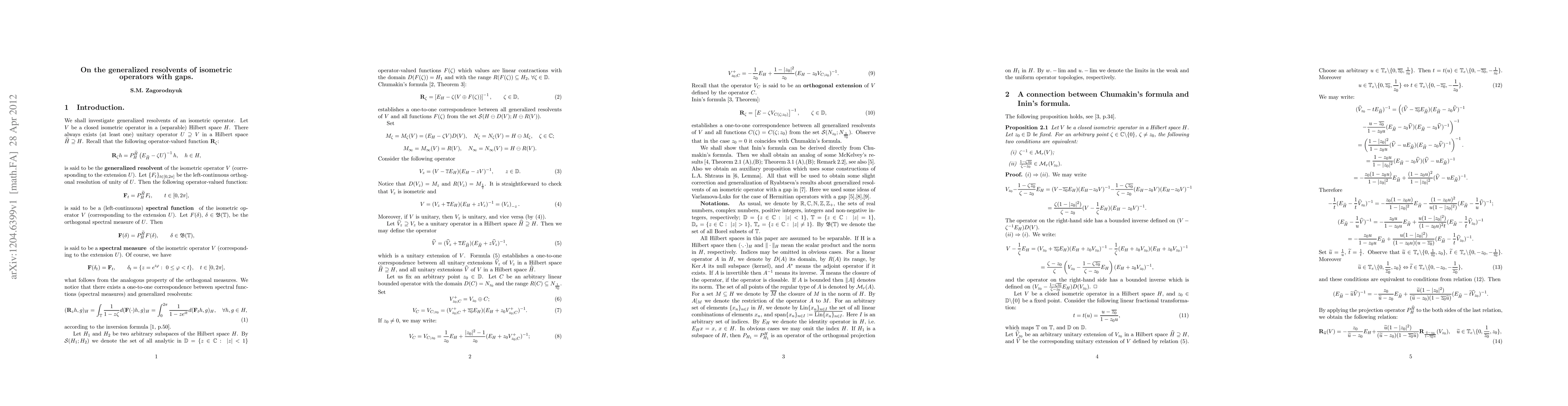 This paper corrects and generalizes Ryabtseva's findings on the generalized resolvents for isometric operators with spectral gaps, and provides analogs of McKelvey's results along with a concise proof of Inin's formula for these operators.