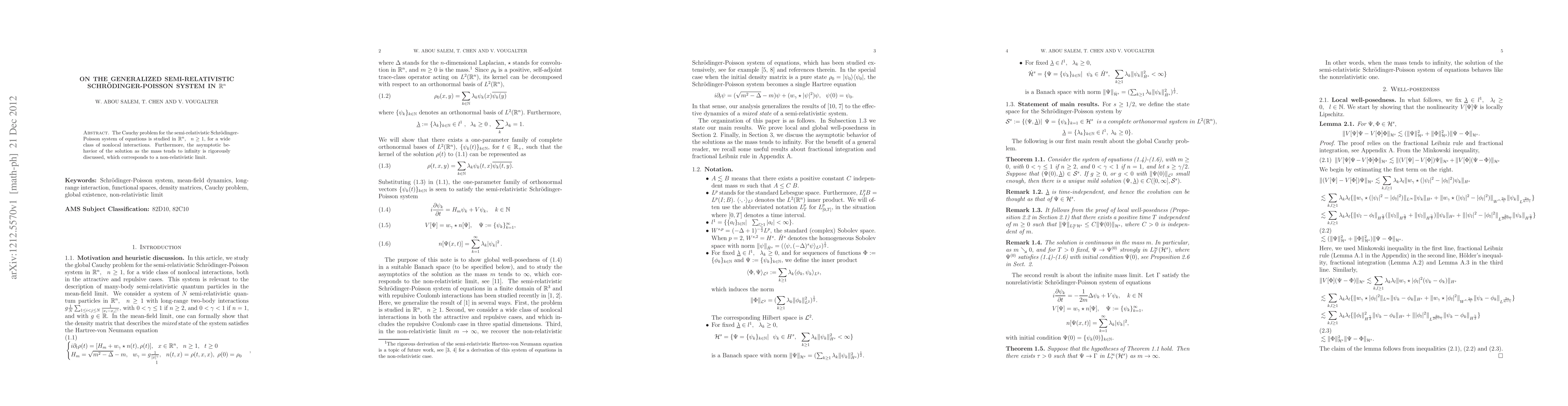 The Cauchy problem for the semi-relativistic Schr\"odinger-Poisson system of equations is studied in ${\mathbb R}^n$, $n\geq 1$, for a wide class of nonlocal interactions. Furthermore, the asymptotic behavior of the solution as the mass tends to infinity is rigorously discussed, which corresponds to a non-relativistic limit.