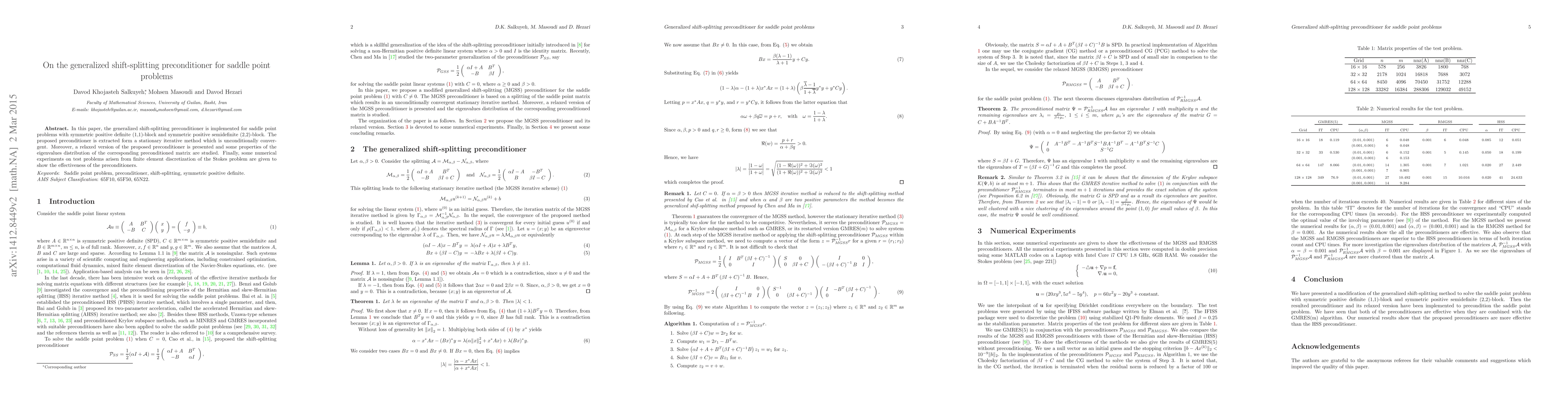 This paper introduces a generalized shift-splitting preconditioner for saddle point problems with specific block structures, demonstrating its unconditional convergence. It also explores a relaxed version and analyzes the eigenvalue distribution of the preconditioned matrix, followed by numerical tests on finite element discretizations of the Stokes problem to validate its effectiveness.