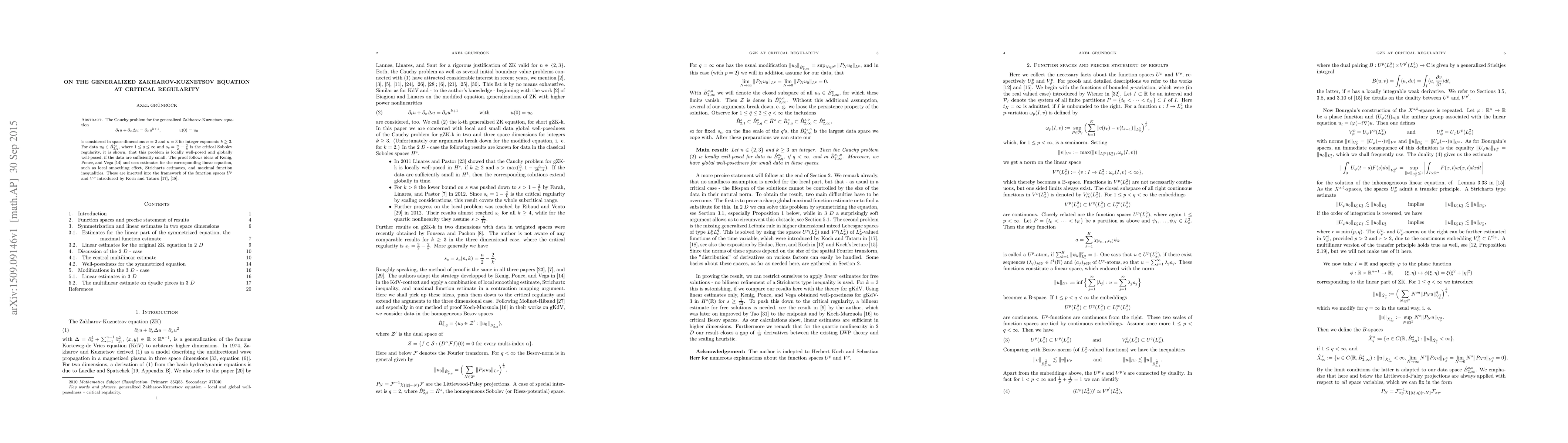 The Cauchy problem for the generalized Zakharov-Kuznetsov equation $$\partial_t u +\partial_x\Delta u=\partial_x u^{k+1}, \qquad \qquad u(0)=u_0$$ is considered in space dimensions $n=2$ and $n=3$ for integer exponents $k \ge 3$. For data $u_0 \in \dot{B}^{s_c}_{2,q}$, where $1\le q \le \infty$ and $s_c=\frac{n}{2}- \frac{2}{k}$ is the critical Sobolev regularity, it is shown, that this problem is locally well-posed and globally well-posed, if the data are sufficiently small. The proof follows ideas of Kenig, Ponce, and Vega and uses estimates for the corresponding linear equation, such as local smoothing effect, Strichartz estimates, and maximal function inequalities. These are inserted into the framework of the function spaces $U^p$ and $V^p$ introduced by Koch and Tataru.