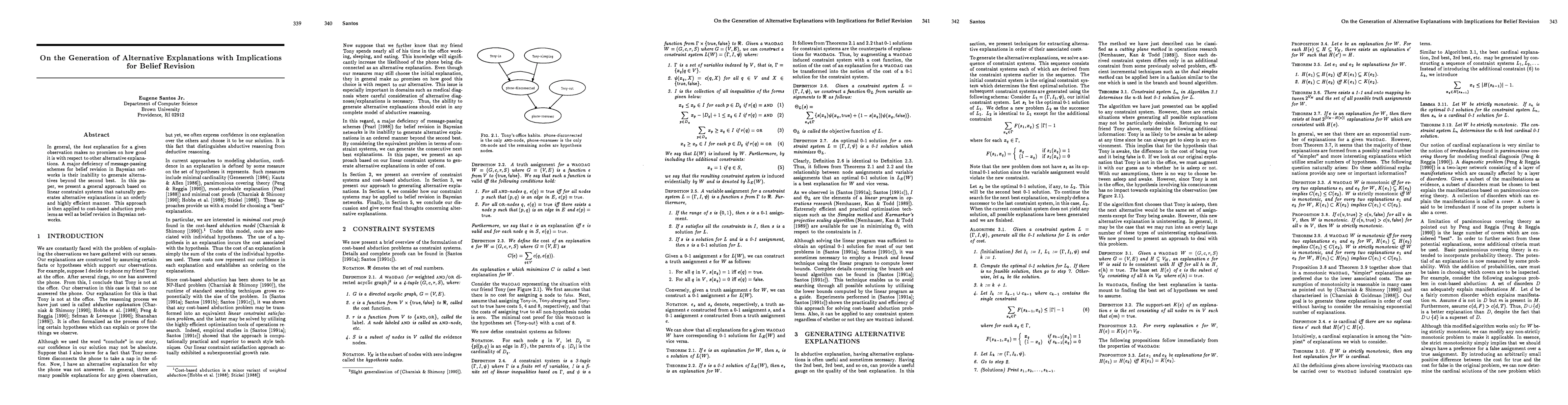 This paper introduces a method based on linear constraint systems to efficiently generate alternative explanations for observations, addressing the limitations of existing belief revision schemes in Bayesian networks that fail to consider beyond the second best alternatives. The approach is applied to cost-based abduction and belief revision in Bayesian networks.