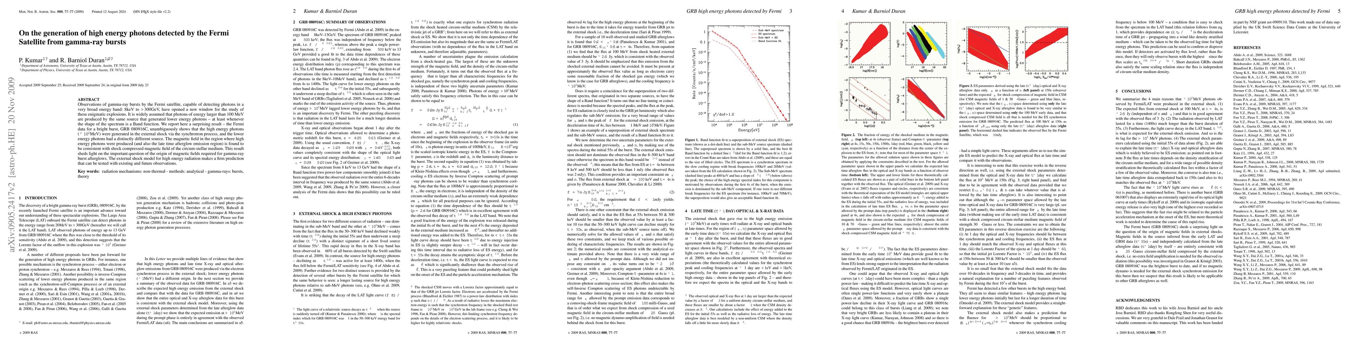 Researchers found that high-energy photons in a gamma-ray burst were produced by an external shock via synchrotron process, while lower energy photons came from a different source, shedding light on the origin of magnetic fields in gamma-ray bursts.