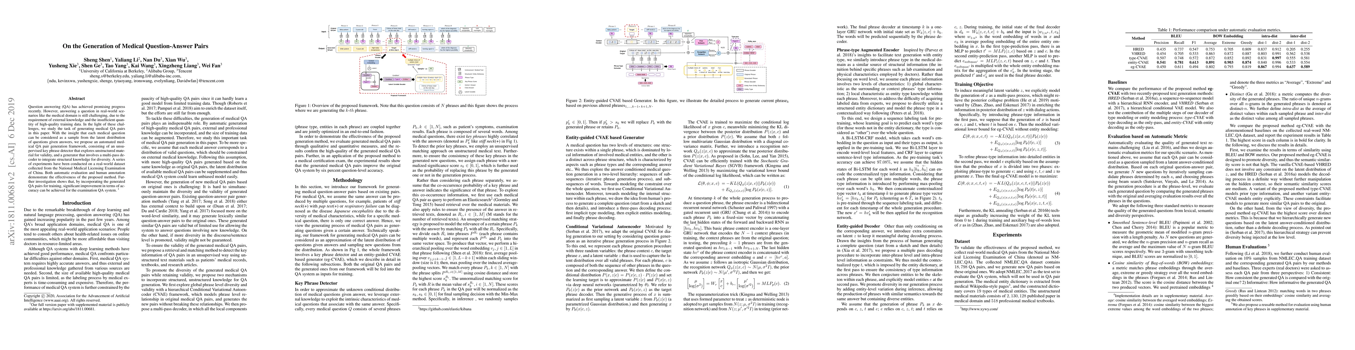 Question answering (QA) has achieved promising progress recently. However, answering a question in real-world scenarios like the medical domain is still challenging, due to the requirement of external knowledge and the insufficient quantity of high-quality training data. In the light of these challenges, we study the task of generating medical QA pairs in this paper. With the insight that each medical question can be considered as a sample from the latent distribution of questions given answers, we propose an automated medical QA pair generation framework, consisting of an unsupervised key phrase detector that explores unstructured material for validity, and a generator that involves a multi-pass decoder to integrate structural knowledge for diversity. A series of experiments have been conducted on a real-world dataset collected from the National Medical Licensing Examination of China. Both automatic evaluation and human annotation demonstrate the effectiveness of the proposed method. Further investigation shows that, by incorporating the generated QA pairs for training, significant improvement in terms of accuracy can be achieved for the examination QA system.