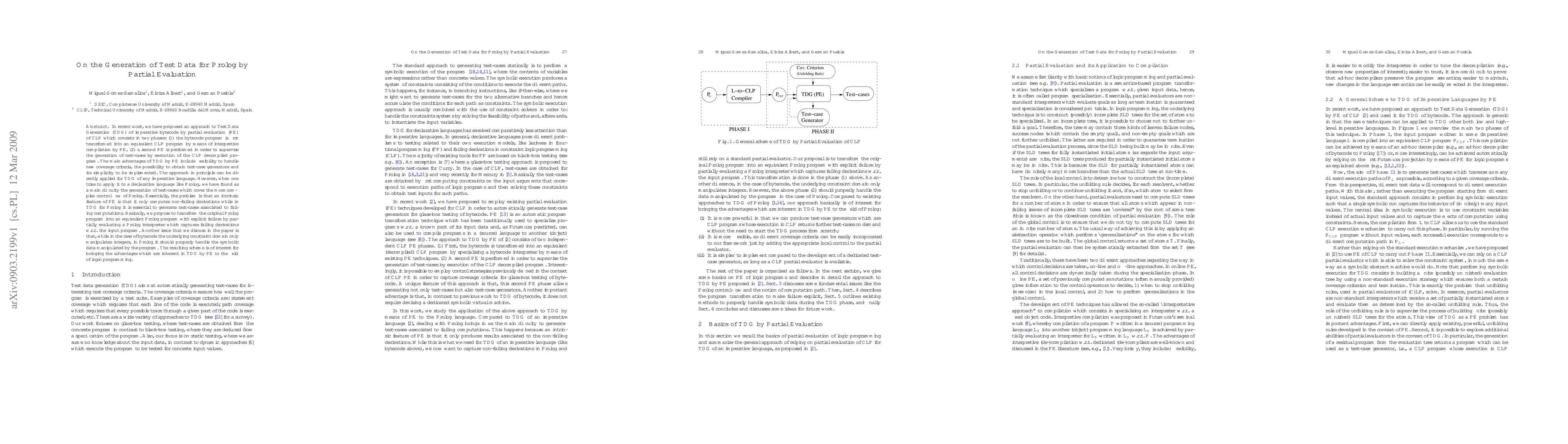 This paper proposes a method for generating test data for Prolog through partial evaluation (PE), addressing the challenge of handling complex control flow and failing computations. It involves transforming the Prolog program to include explicit failure and ensuring the scheme can manage Prolog's symbolic data, extending the benefits of PE-based test data generation to logic programming.