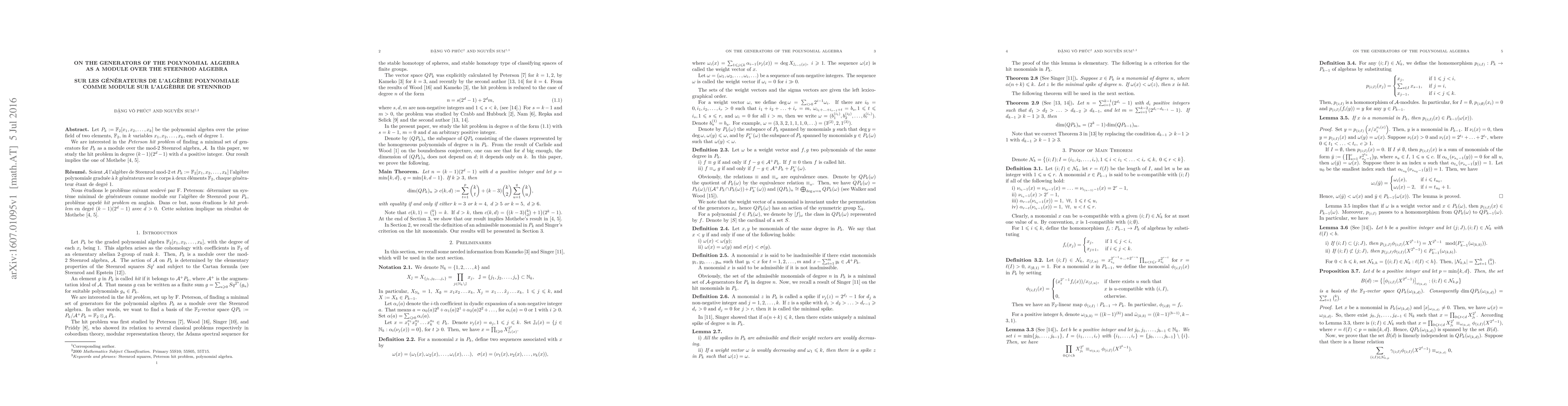 Let $P_k:= \mathbb F_2[x_1,x_2,\ldots,x_k]$ be the polynomial algebra over the prime field of two elements, $\mathbb F_2$, in $k$ variables $x_1, x_2, \ldots, x_k$, each of degree 1. We are interested in the Peterson hit problem of finding a minimal set of generators for $P_k$ as a module over the mod-2 Steenrod algebra, $\mathcal{A}$. In this paper, we study the hit problem in degree $(k-1)(2^d-1)$ with $d$ a positive integer. Our result implies the one of Mothebe [4,5].