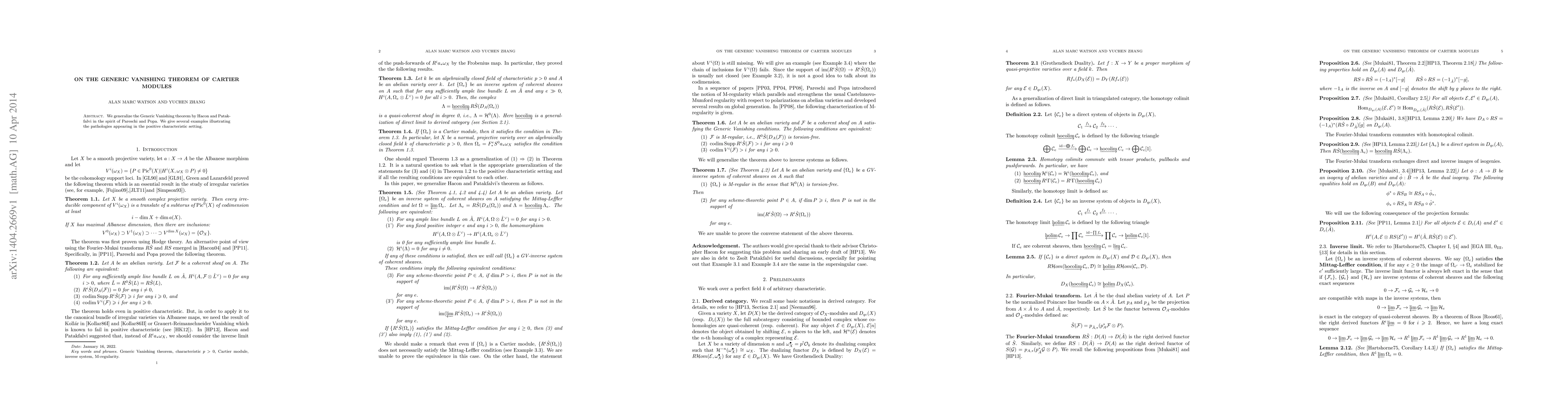 We generalize the Generic Vanishing theorem by Hacon and Patakfalvi in the spirit of Pareschi and Popa. We give several examples illustrating the pathologies appearing in the positive characteristic setting.