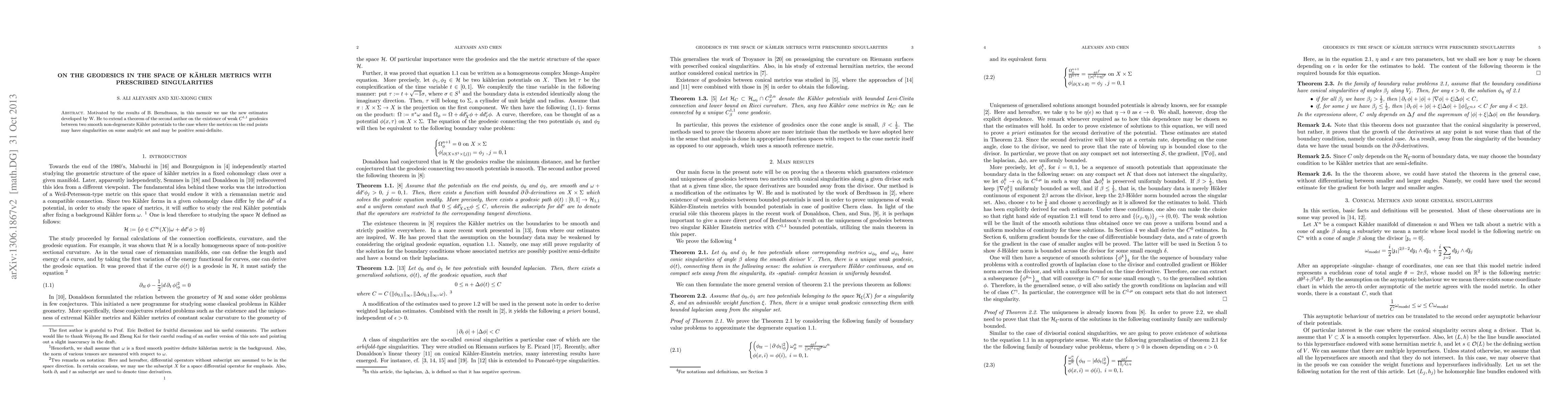 This paper extends a theorem on the existence of weak $C^{1,1}$ geodesics between smooth Kähler metrics to cases where the end points may have singularities on an analytic set and may be positive semi-definite, using new estimates developed by W. He.