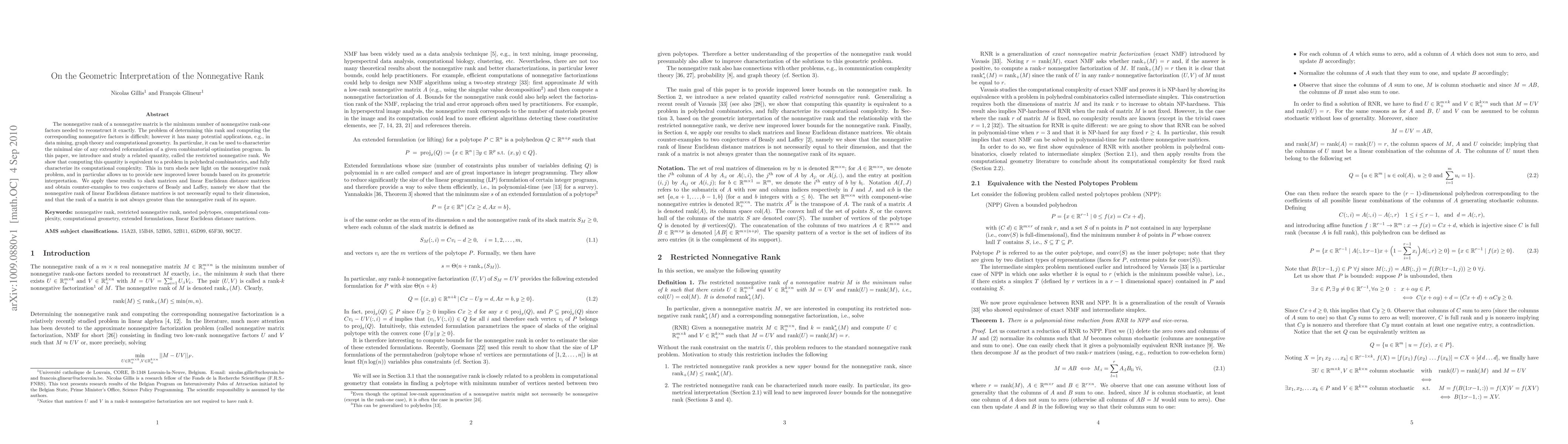 This paper explores the geometric interpretation of the nonnegative rank, introducing the restricted nonnegative rank, which is linked to polyhedral combinatorics. It provides new insights and improved lower bounds for the nonnegative rank, challenging existing conjectures regarding linear Euclidean distance matrices.