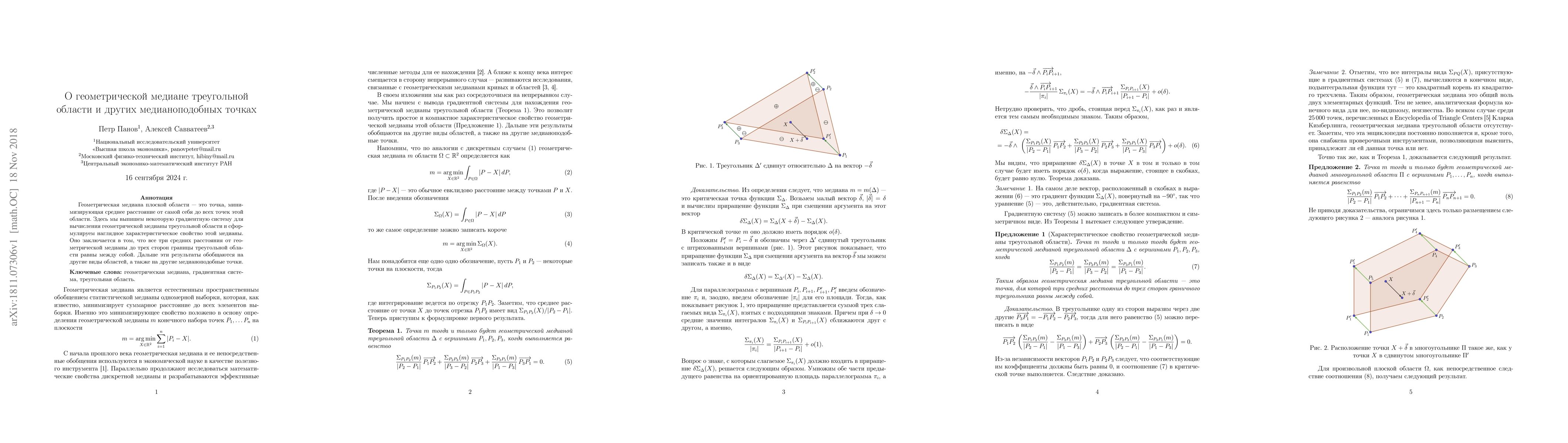Researchers find a geometric property of the median point in triangular domains: the average distances from the median to each side of the triangle are equal. They generalize this result to other types of domains and medians.