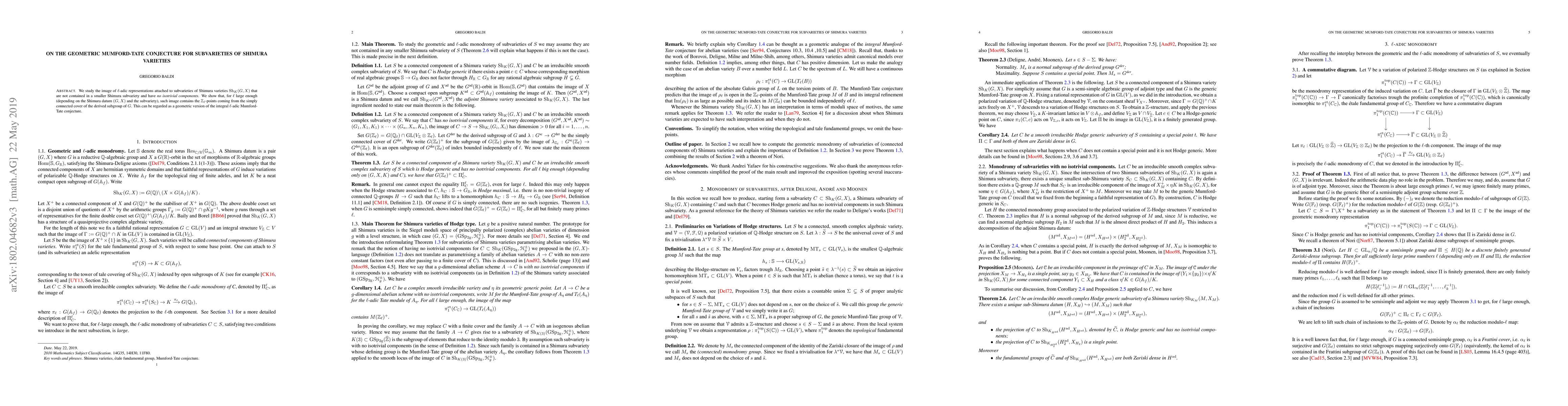 The study reveals that $\ell$-adic representations from subvarieties of Shimura varieties, excluding smaller subvarieties and non-isotrivial components, contain $\mathbb{Z}_\ell$-points from the simply connected cover of the derived subgroup of $G$ for sufficiently large $\ell$. This supports a geometric version of the integral $\ell$-adic Mumford-Tate conjecture.