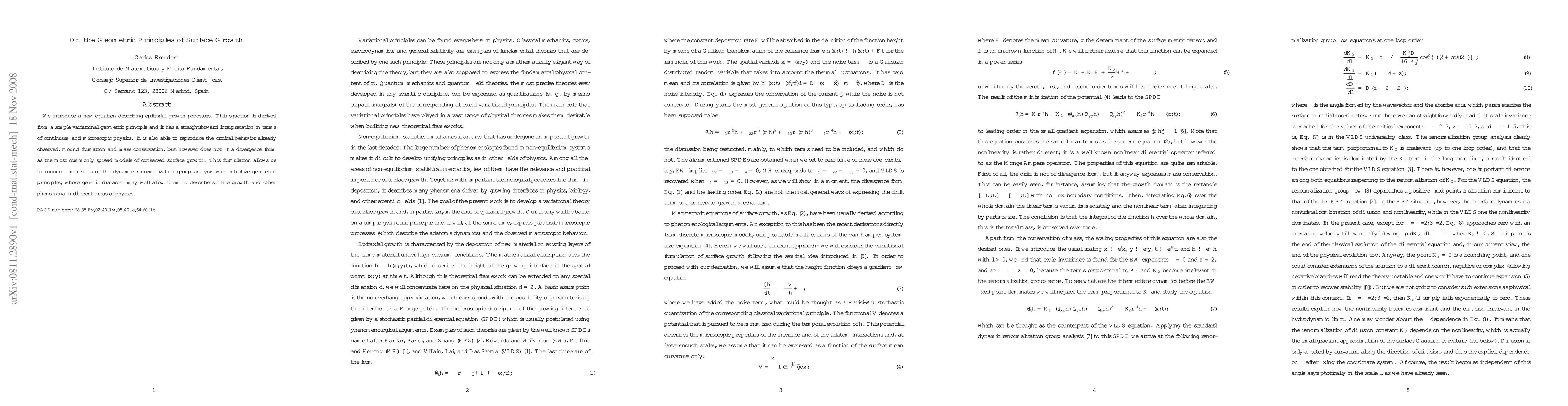 We introduce a new equation describing epitaxial growth processes. This equation is derived from a simple variational geometric principle and it has a straightforward interpretation in terms of continuum and microscopic physics. It is also able to reproduce the critical behavior already observed, mound formation and mass conservation, but however does not fit a divergence form as the most commonly spread models of conserved surface growth. This formulation allows us to connect the results of the dynamic renormalization group analysis with intuitive geometric principles, whose generic character may well allow them to describe surface growth and other phenomena in different areas of physics.
