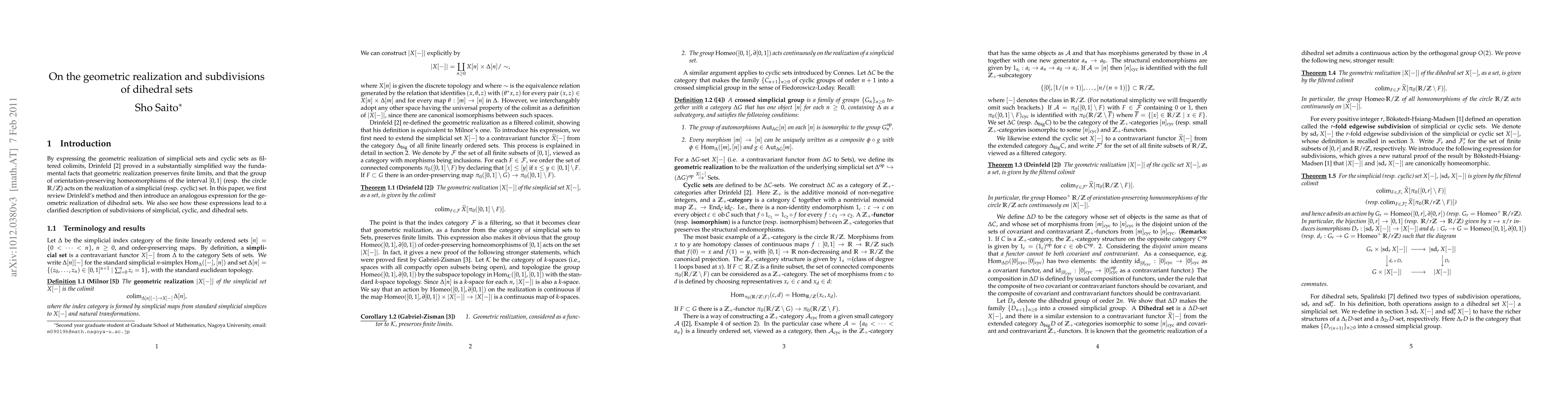 This paper builds upon Drinfeld's work by introducing an expression for the geometric realization of dihedral sets, leading to a clarified description of subdivisions of simplicial, cyclic, and dihedral sets.