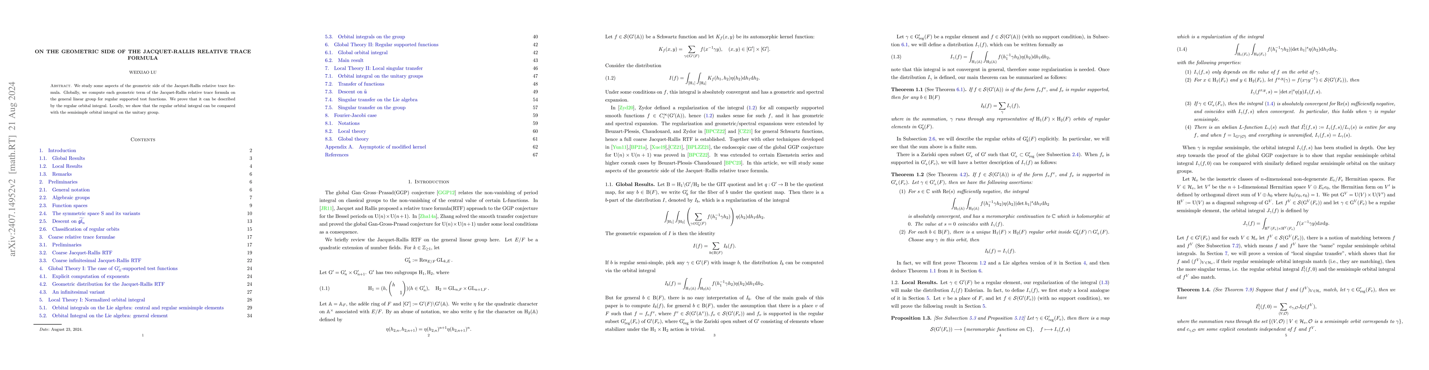 This paper computes the geometric terms of the Jacquet-Rallis relative trace formula for the general linear group using regular supported test functions, demonstrating their description by the regular orbital integral, and establishes a local comparison between the regular and semisimple orbital integrals on the unitary group.