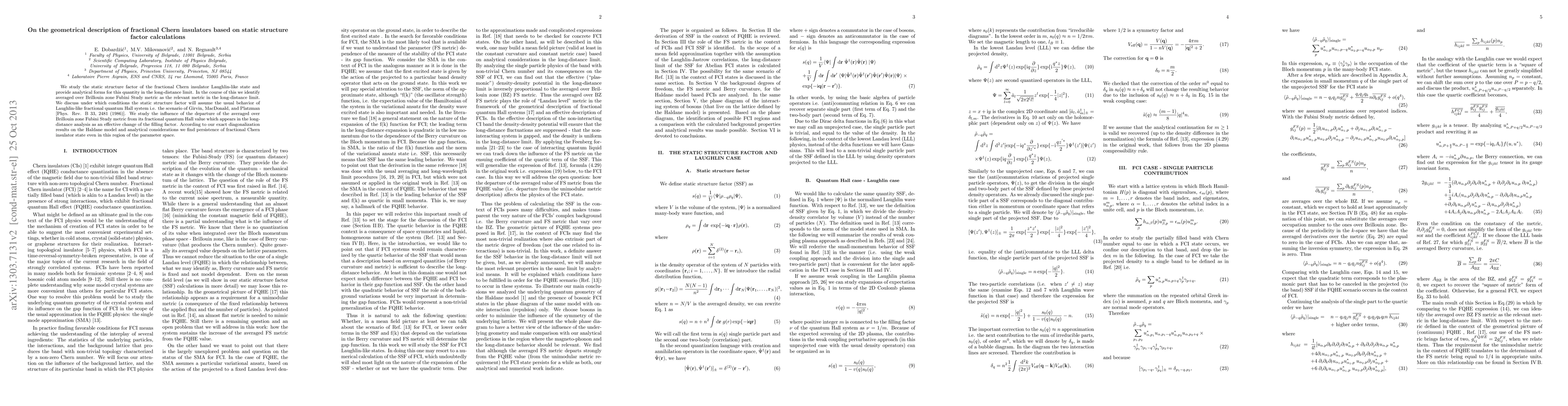 This paper investigates the static structure factor of fractional Chern insulators in Laughlin-like states, identifying the averaged Brillouin zone Fubini Study metric as crucial in the long-distance limit. It finds that despite deviations from the fractional quantum Hall metric, the fractional Chern insulator state persists.