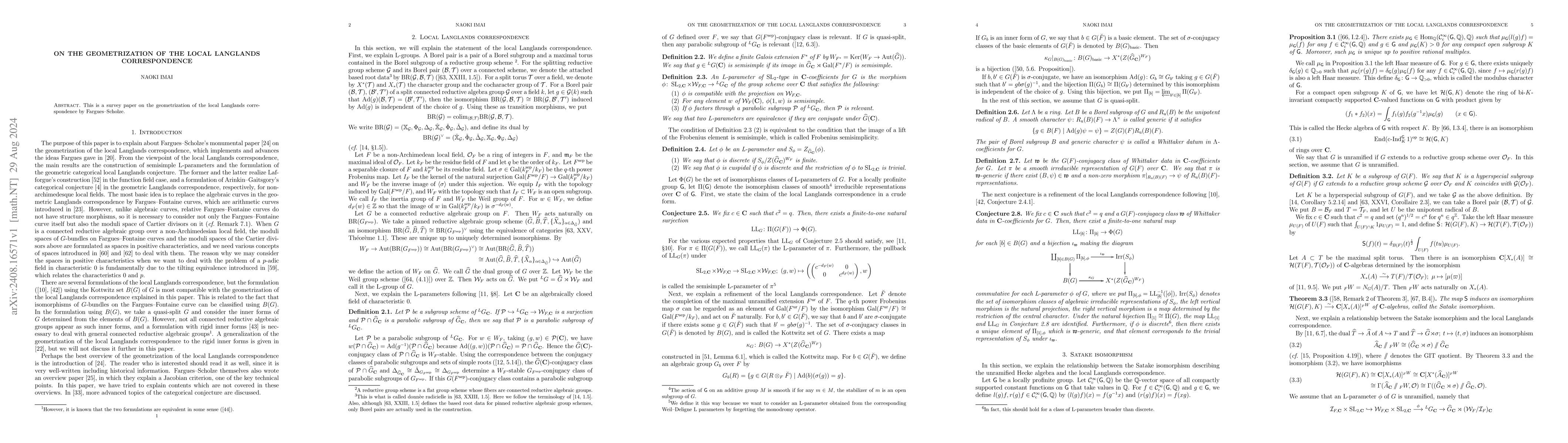 This is a survey paper on the geometrization of the local Langlands correspondence by Fargues-Scholze.