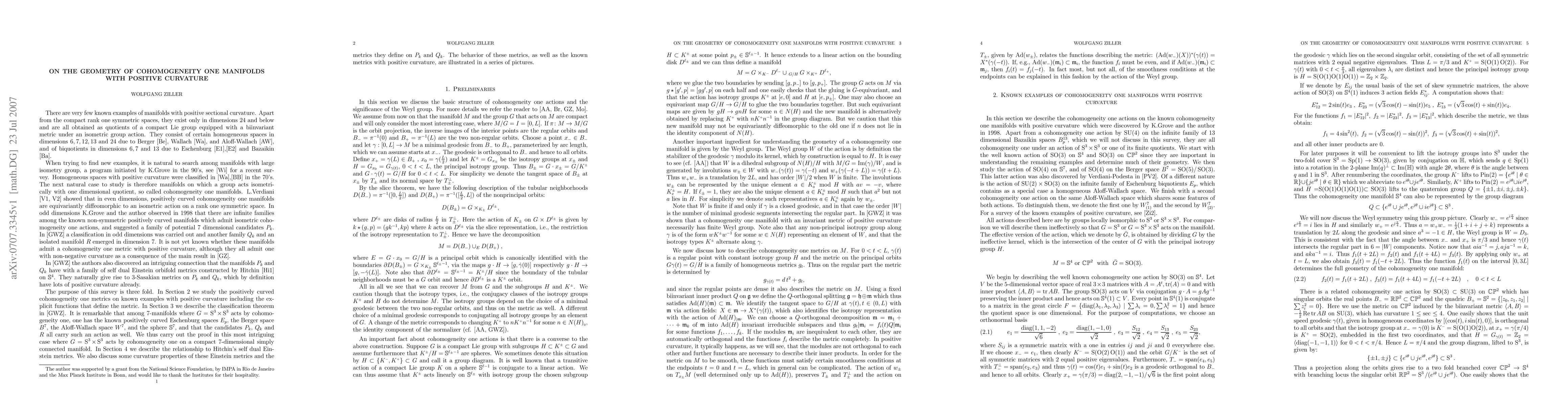 This paper surveys cohomogeneity one manifolds with positive curvature, discussing known examples, their geometry, and the metric functions that describe them. It outlines the classification by Grove, Wilking, and Ziller and explores the connection between undecided candidates and Hitchin self-dual Einstein orbifolds, including the curvature properties of Hitchin metrics.