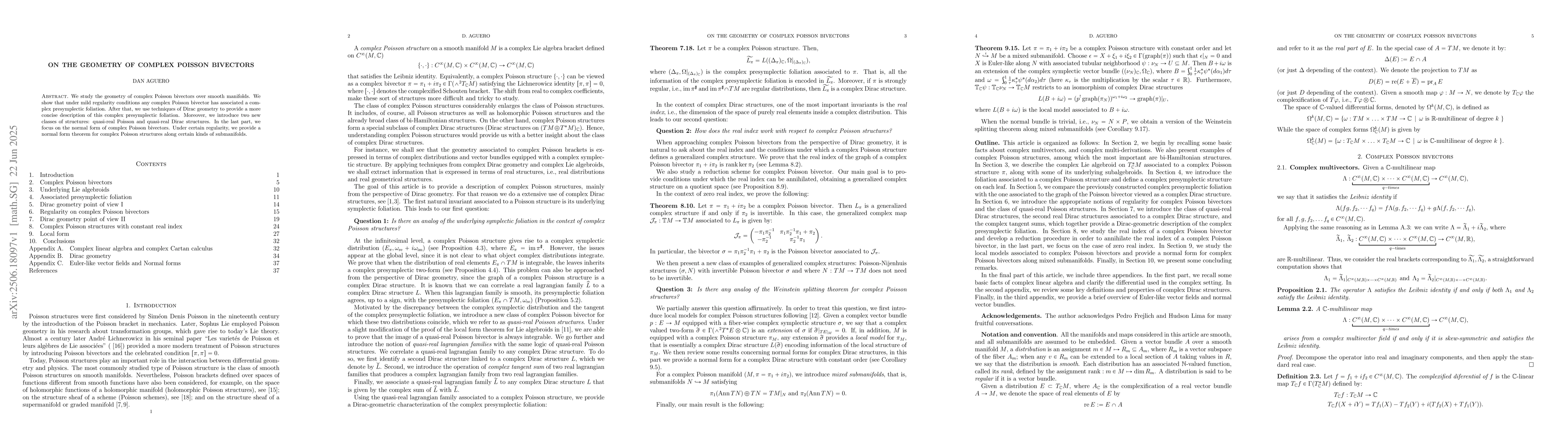 This research explores the geometry of complex Poisson bivectors on smooth manifolds, revealing that any such bivector corresponds to a complex presymplectic foliation. Utilizing Dirac geometry, it offers a streamlined description of this foliation and introduces new classes - quasi-real Poisson and quasi-real Dirac structures. The paper also presents a normal form theorem for complex Poisson structures under specific regularity conditions along certain submanifolds.