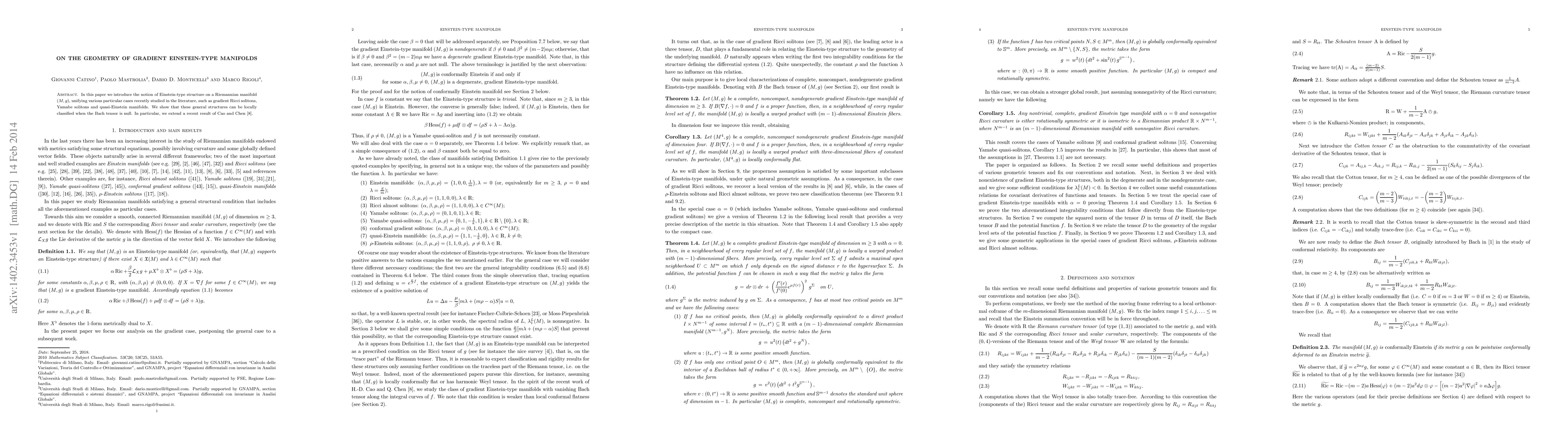 This paper introduces the concept of Einstein-type structure on Riemannian manifolds, encompassing gradient Ricci solitons, Yamabe solitons, and quasi-Einstein manifolds. It demonstrates local classification of these structures when the Bach tensor is null, extending a result by Cao and Chen.