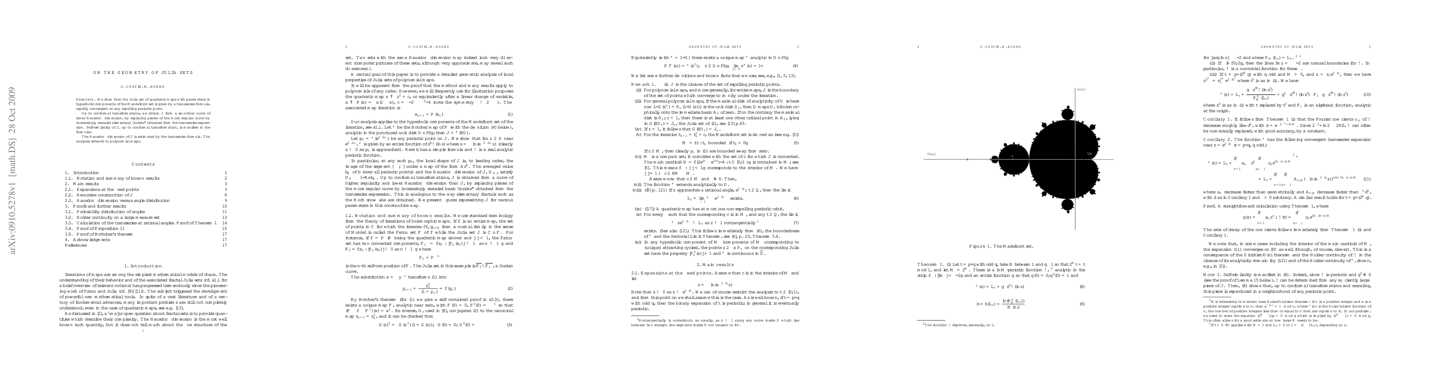 We show that the Julia set of quadratic maps with parameters in hyperbolic components of the Mandelbrot set is given by a transseries formula, rapidly convergent at any repelling periodic point. Up to conformal transformations, we obtain $J$ from a smoother curve of lower Hausdorff dimension, by replacing pieces of the more regular curve by increasingly rescaled elementary "bricks" obtained from the transseries expression. Self-similarity of $J$, up to conformal transformation, is manifest in the formulas. The Hausdorff dimension of $J$ is estimated by the transseries formula. The analysis extends to polynomial maps.