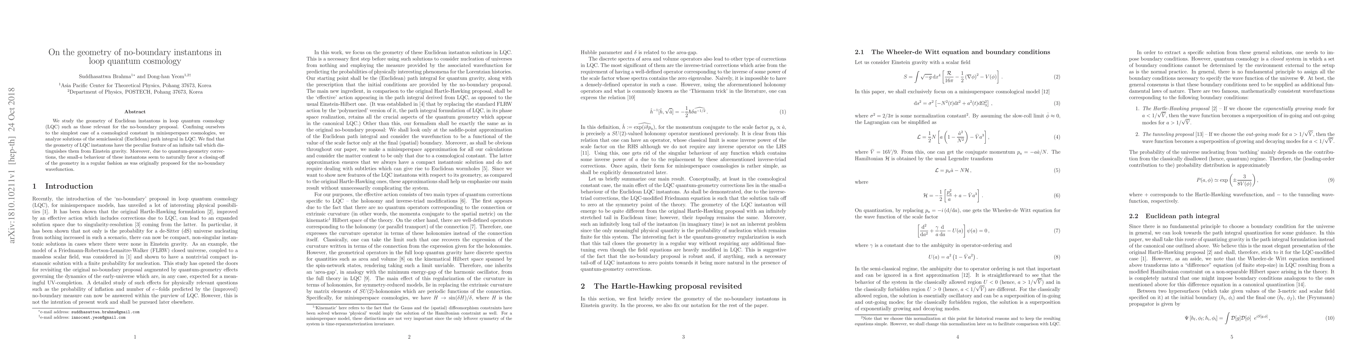We study the geometry of Euclidean instantons in loop quantum cosmology (LQC) such as those relevant for the no-boundary proposal. Confining ourselves to the simplest case of a cosmological constant in minisuperspace cosmologies, we analyze solutions of the semiclassical (Euclidean) path integral in LQC. We find that the geometry of LQC instantons have the peculiar feature of an infinite tail which distinguishes them from Einstein gravity. Moreover, due to quantum-geometry corrections, the small-a behaviour of these instantons seem to naturally favor a closing-off of the geometry in a regular fashion as was originally proposed for the no-boundary wavefunction.