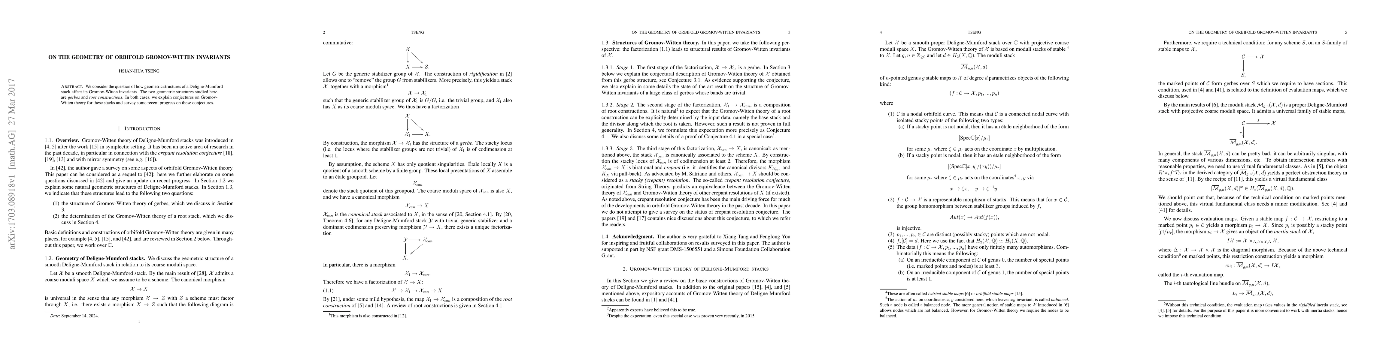 We consider the question of how geometric structures of a Deligne-Mumford stack affect its Gromov-Witten invariants. The two geometric structures studied here are {\em gerbes} and {\em root constructions}. In both cases, we explain conjectures on Gromov-Witten theory for these stacks and survey some recent progress on these conjectures.
