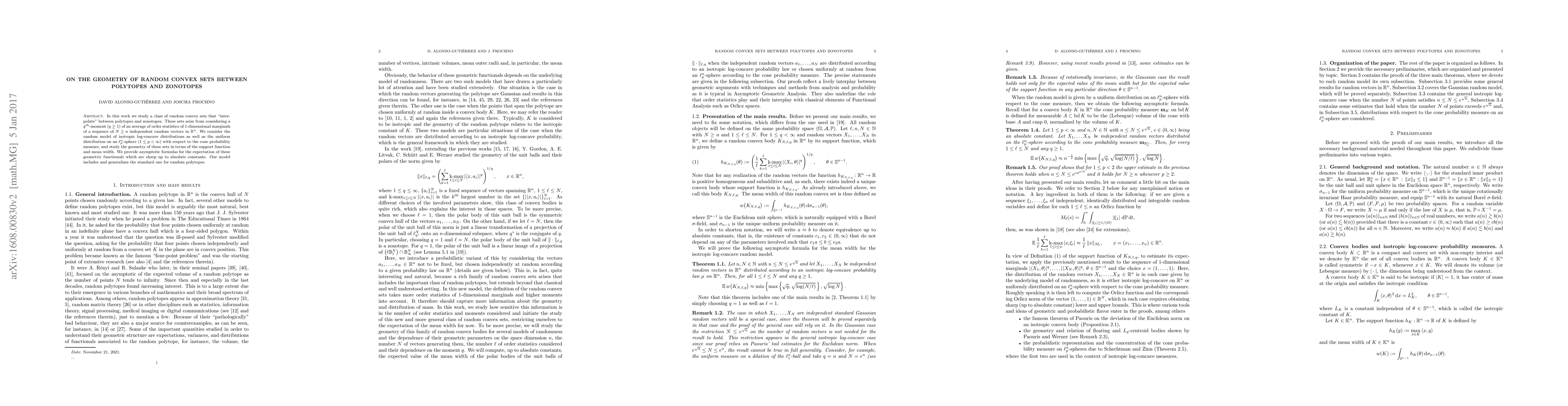 The research studies random convex sets that interpolate between polytopes and zonotopes, considering a qth-moment of an average of order statistics of 1-dimensional marginals of independent random vectors in R^n. It examines isotropic log-concave distributions and uniform distribution on an ℓp^n-sphere.