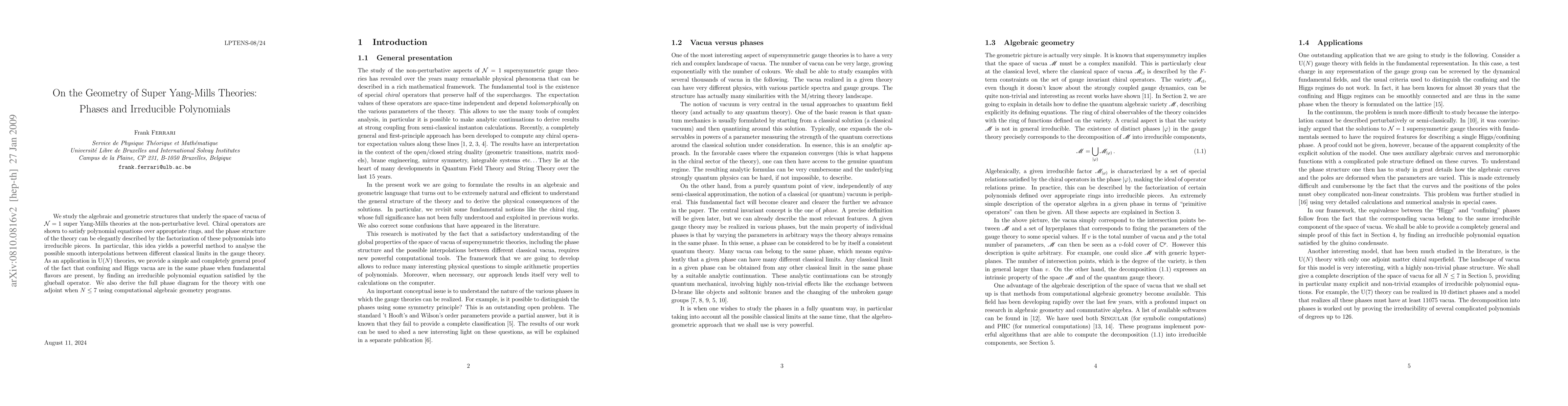 Researchers studied super Yang-Mills theories, finding that chiral operators satisfy polynomial equations that help describe the theory's phases and interpolations between different limits. This method provides a general proof for certain vacua in U(Nc) theories.