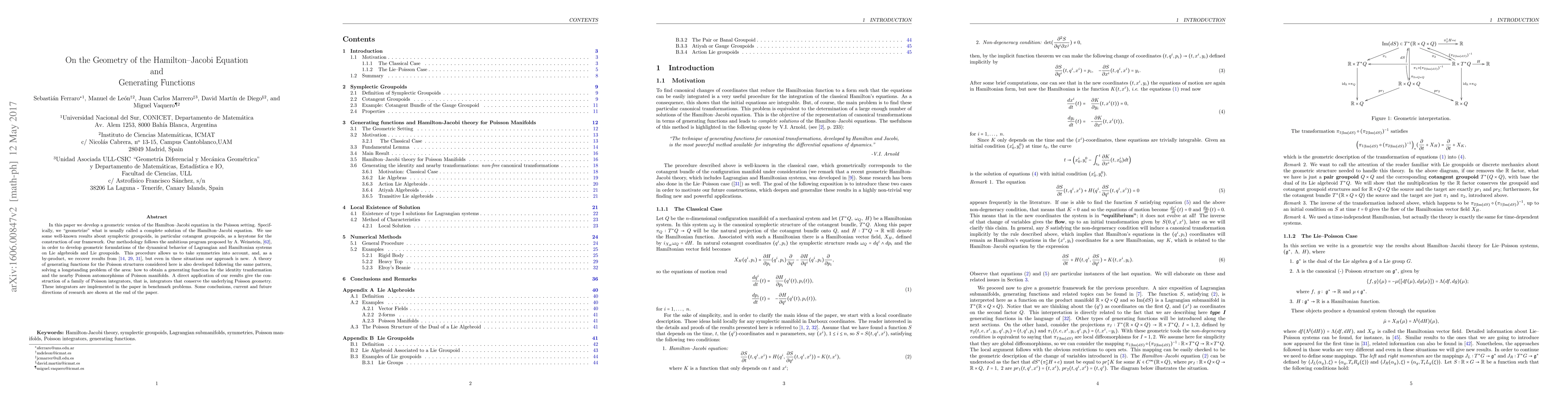 This paper develops a geometric framework for the Hamilton-Jacobi equation using symplectic groupoids, particularly cotangent groupoids, to account for symmetries and construct Poisson integrators that preserve underlying geometry. It also establishes a theory for generating functions within Poisson structures, providing solutions to longstanding problems and demonstrating applications in benchmark problems.