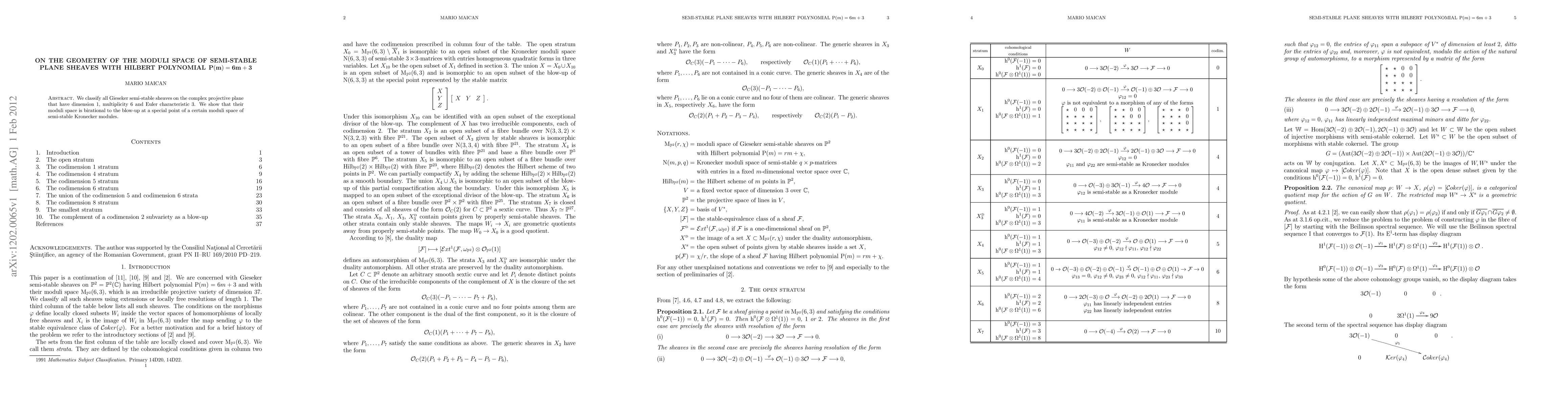 This paper classifies Gieseker semi-stable sheaves on the complex projective plane with dimension 1, multiplicity 6, and Euler characteristic 3. It demonstrates that the moduli space of these sheaves is birational to the blow-up of a specific moduli space of Kronecker modules.