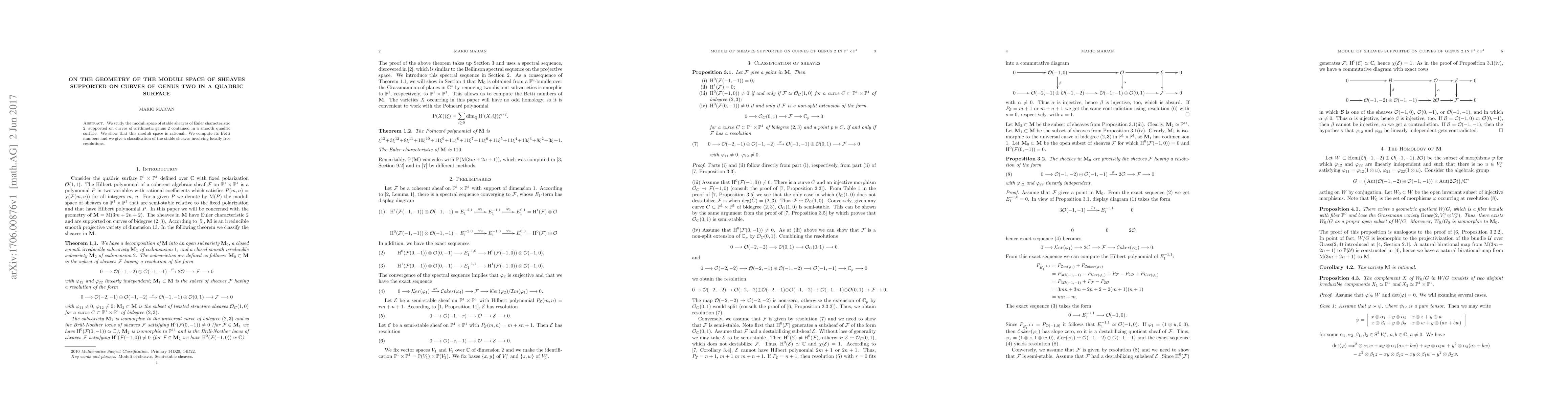 This paper investigates the rational nature of the moduli space for stable sheaves with Euler characteristic 2 on genus 2 curves within a smooth quadric surface. It provides a classification of these sheaves through locally free resolutions and computes their Betti numbers.