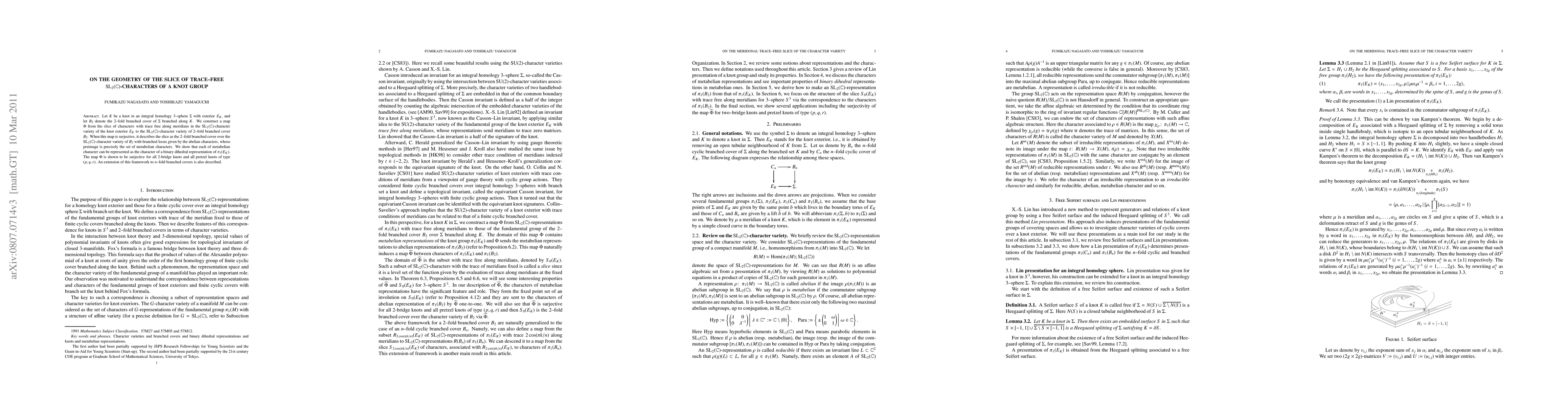 Let K be a knot in an integral homology 3-sphere and let B denote the 2-fold branched cover of the integral homology sphere branched along K. We construct a map from the slice of characters with trace free along meridians in the SL(2, C)-character variety of the knot exterior to the SL(2, C)-character variety of 2-fold branched cover B. When this map is surjective, it describes the slice as the 2-fold branched cover over the SL(2, C)-character variety of B with branched locus given by the abelian characters, whose preimage is precisely the set of metabelian characters. We show that each of metabelian character can be represented as the character of a binary dihedral representation of the knot group. This map is shown to be surjective for all 2-bridge knots and all pretzel knots of type (p, q, r). An extension of this framework to n-fold branched covers is also described.