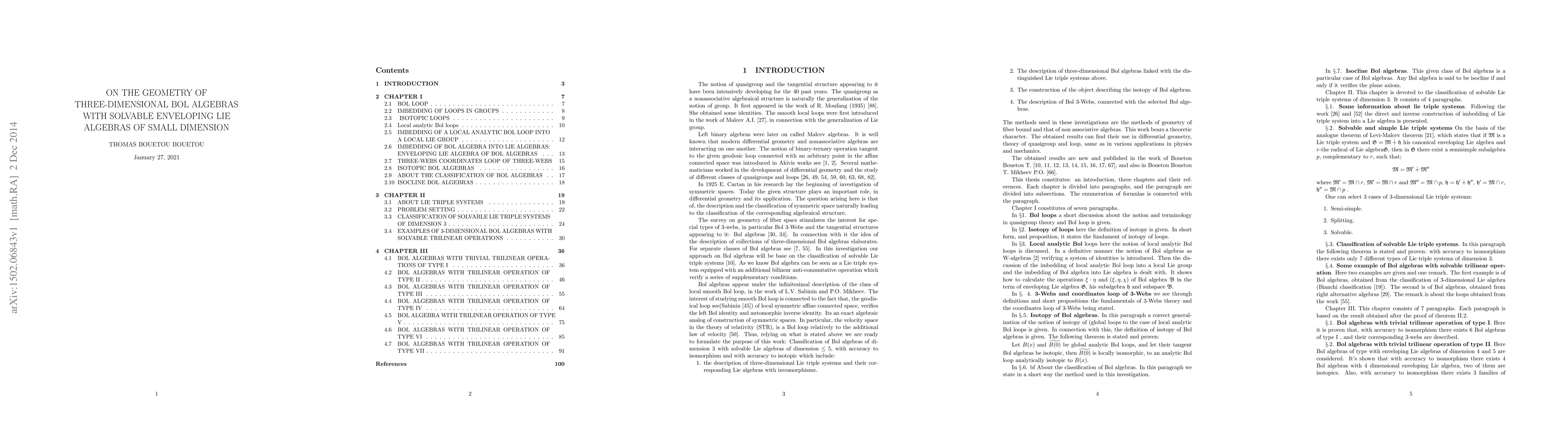 This paper provides a detailed description of three-dimensional Lie triple systems and their corresponding Lie algebras, focusing on those with solvable enveloping Lie algebras. It also explores three-dimensional Bol algebras linked to these systems and constructs objects describing the isotopy of Bol algebras, along with Bol 3-Webs associated with selected Bol algebras.