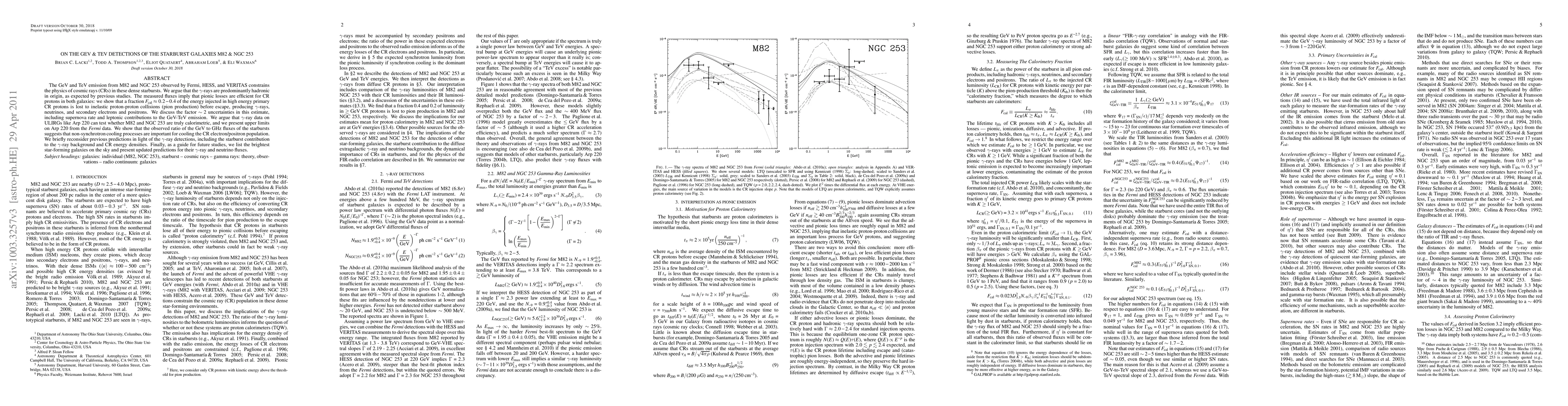 The GeV and TeV emission from M82 and NGC 253 observed by Fermi, HESS, and VERITAS constrains the physics of cosmic rays (CRs) in these dense starbursts. We argue that the gamma rays are predominantly hadronic in origin, as expected by previous studies. The measured fluxes imply that pionic losses are efficient for CR protons in both galaxies: we show that a fraction F_cal ~ 0.2 - 0.4 of the energy injected in high energy primary CR protons is lost to inelastic proton-proton collisions (pion production) before escape, producing gamma rays, neutrinos, and secondary electrons and positrons. We discuss the factor ~2 uncertainties in this estimate, including supernova rate and leptonic contributions to the GeV-TeV emission. We argue that gamma-ray data on ULIRGs like Arp 220 can test whether M82 and NGC 253 are truly calorimetric, and we present upper limits on Arp 220 from the Fermi data. We show that the observed ratio of the GeV to GHz fluxes of the starbursts suggests that non-synchrotron cooling processes are important for cooling the CR electron/positron population. We briefly reconsider previous predictions in light of the gamma-ray detections, including the starburst contribution to the gamma-ray background and CR energy densities. Finally, as a guide for future studies, we list the brightest star-forming galaxies on the sky and present updated predictions for their gamma-ray and neutrino fluxes.