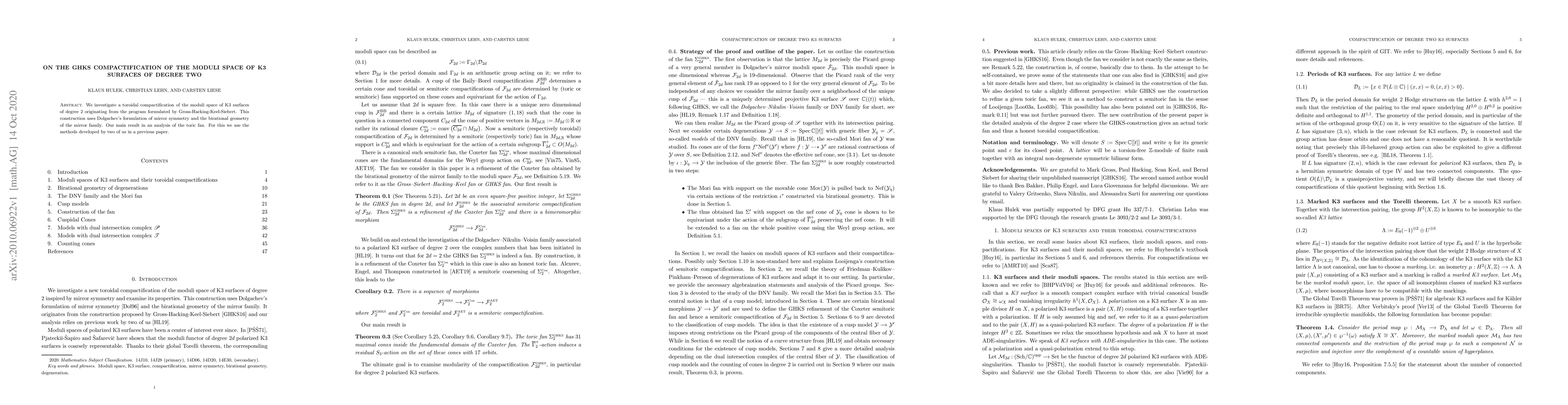 This paper studies a toroidal compactification of the moduli space for K3 surfaces of degree two, leveraging Gross-Hacking-Keel-Siebert's program, Dolgachev's mirror symmetry, and birational geometry. The main result focuses on analyzing the toric fan, utilizing methods from a prior work by the authors.