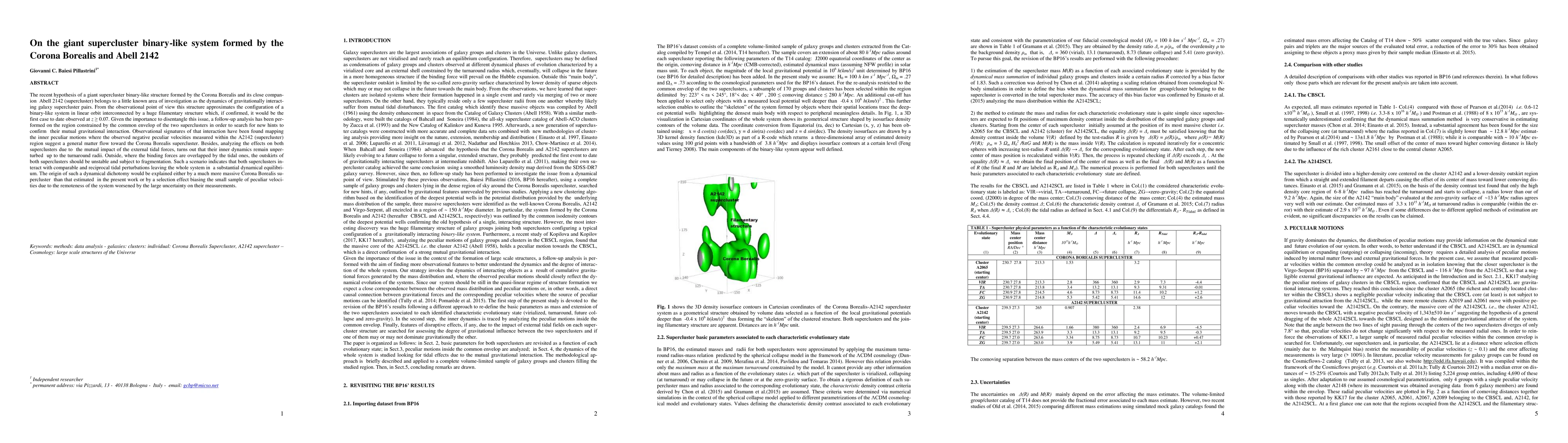 The recent hypothesis of a giant supercluster binary-like structure formed by the Corona Borealis and its close companion Abell 2142 (supercluster) belongs to a little known area of investigation as the dynamics of gravitationally interacting galaxy supercluster pairs. From the observational point of view this structure approximates the configuration of a binary-like system in linear orbit interconnected by a huge filamentary structure which, if confirmed, it would be the first case to date observed at z > 0.07. Given the importance to disentangle this issue, a follow-up analysis has been performed on the region constrained by the common envelop of the two superclusters in order to search for new hints to confirm their mutual gravitational interaction. Observational signatures of that interaction have been found mapping the inner peculiar motions where the observed negative peculiar velocities measured within the A2142 (supercluster) region suggest a general matter flow toward the Corona Borealis supercluster. Besides, analyzing the effects on both superclusters due to the mutual impact of the external tidal forces, turns out that their inner dynamics remain unperturbed up to the turnaround radii. Outside, where the binding forces are overlapped by the tidal ones, the outskirts of both superclusters should be unstable and subject to fragmentation. Such a scenario indicates that both superclusters interact with comparable and reciprocal tidal perturbations leaving the whole system in a substantial dynamical equilibrium. The origin of such a dynamical dichotomy would be explained either by a much more massive Corona Borealis supercluster than that estimated in the present work or by a selection effect biasing the small sample of peculiar velocities due to the remoteness of the system worsened by the large uncertainty on their measurements.