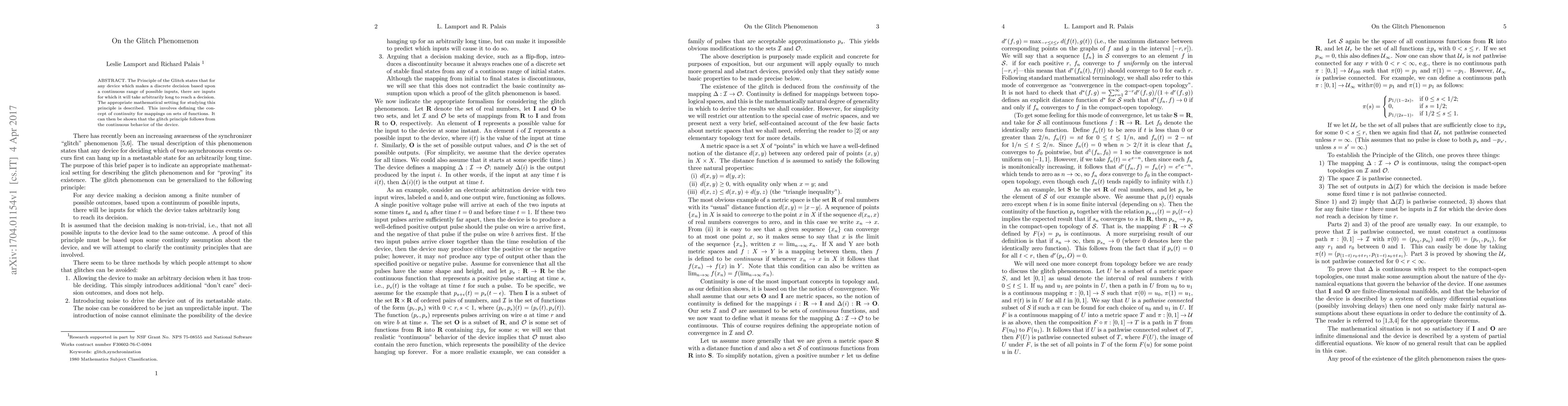 The Principle of the Glitch states that for any device which makes a discrete decision based upon a continuous range of possible inputs, there are inputs for which it will take arbitrarily long to reach a decision. The appropriate mathematical setting for studying this principle is described. This involves defining the concept of continuity for mappings on sets of functions. It can then be shown that the glitch principle follows from the continuous behavior of the device.
