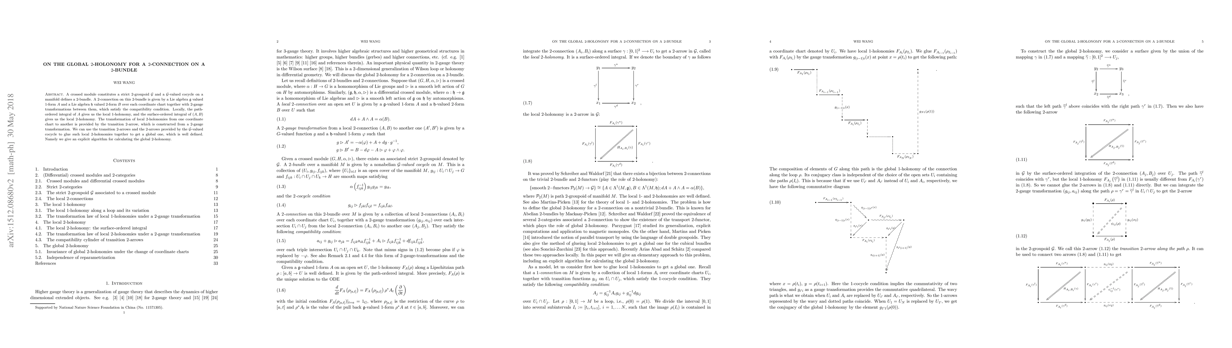 A crossed module constitutes a strict $2$-groupoid $\mathcal{G}$ and a $\mathcal{G}$-valued cocycle on a manifold defines a $2$-bundle. A $2$-connection on this $2$-bundle is given by a Lie algebra $\mathfrak g$ valued $1$-form $A $ and a Lie algebra $\mathfrak h$ valued $2$-form $B $ over each coordinate chart together with $2$-gauge transformations between them, which satisfy the compatibility condition. Locally, the path-ordered integral of $A $ gives us the local $1$-holonomy, and the surface-ordered integral of $(A ,B )$ gives us the local $2$-holonomy. The transformation of local $2$-holonomies from one coordinate chart to another is provided by the transition $2$-arrow, which is constructed from a $2$-gauge transformation. We can use the transition $2$-arrows and the $2$-arrows provided by the $\mathcal{G}$-valued cocycle to glue such local $2$-holonomies together to get a global one, which is well defined. Namely we give an explicit algorithm for calculating the global $2$-holonomy.