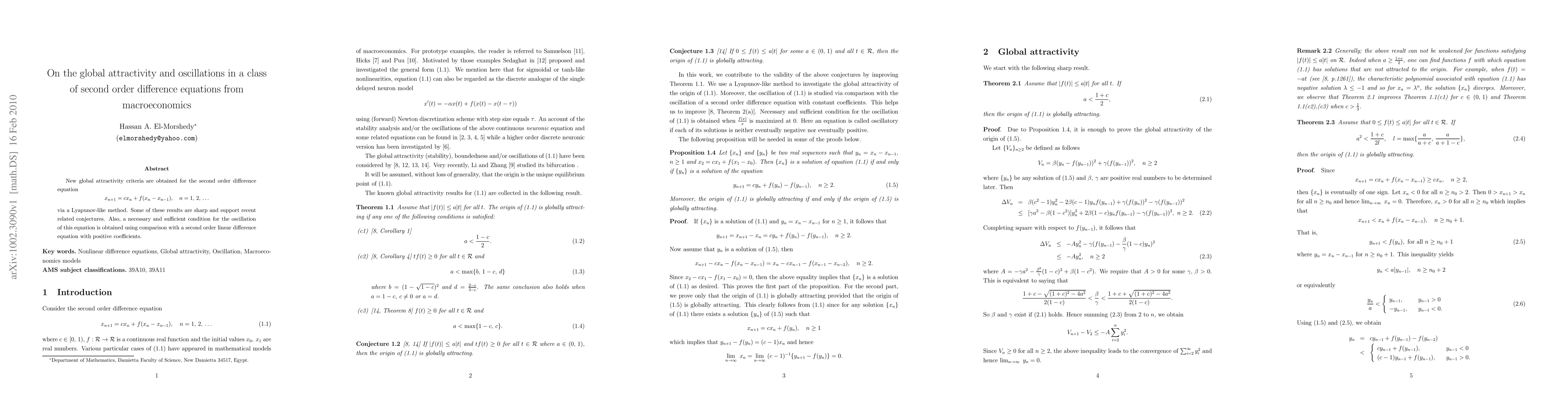 New criteria for global attractivity and oscillation are established in a class of second-order difference equations using a Lyapunov-like method, providing insights into macroeconomic dynamics.