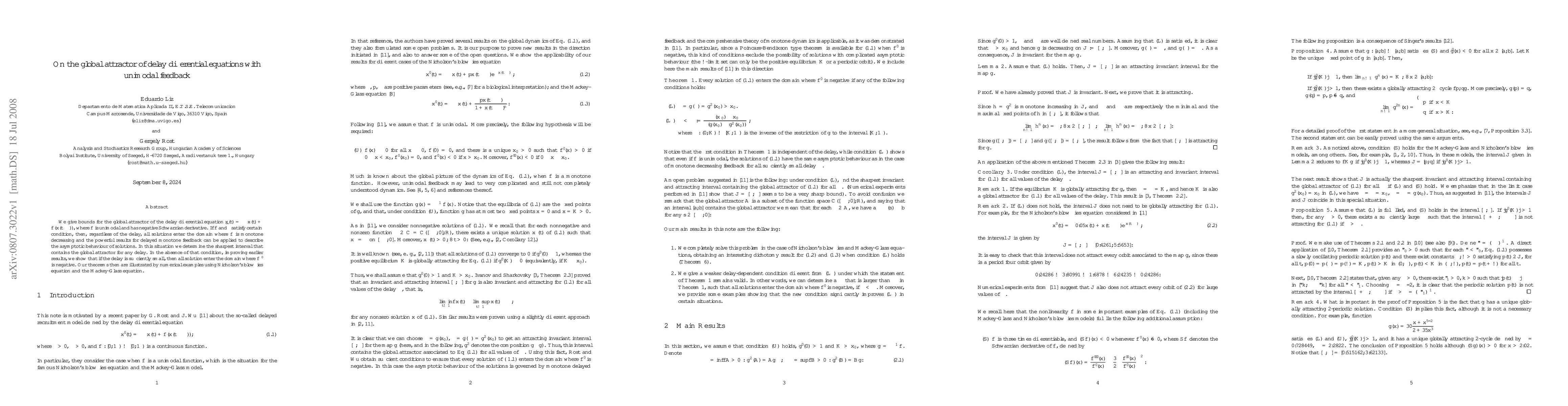 This paper determines bounds for the global attractor of a delay differential equation with unimodal feedback, showing that under specific conditions all solutions converge to a monotone decreasing region, enabling the application of delayed monotone feedback results. It also presents improved results for scenarios without these conditions, demonstrating that small delays can still confine solutions to a negative derivative domain.